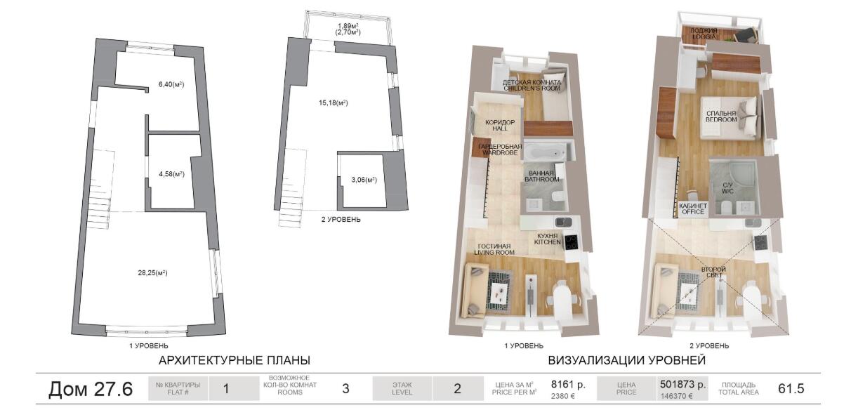 -Антресольный этаж: Каждая квартира имеет антресоль — дополнительный уровень, который идеально подходит для организации кабинета, спальни или мини-спа-зоны. Площадь антресоли не превышает 40% от площади основного помещения.