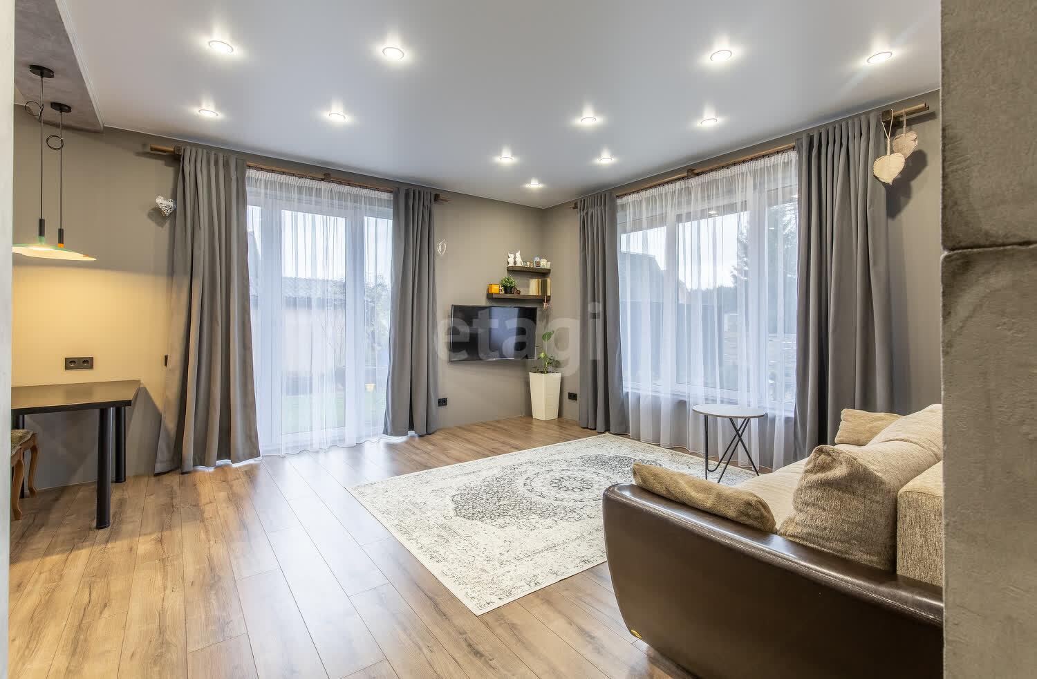 - Функциональная и компактная планировка: просторная кухня (11,0 кв.м.) совмещена с гостиной зоной – 20,7 кв.м, что создает гармоничное пространство для семейного общения. Три изолированные спальни удалены от общей зоны, что позволит уединиться и спокойно отдыхать. В хозяйской спальне имеется свой санузел и вместительная гардеробная. Также в доме есть второй санузел с душевой, котельная и подвал.