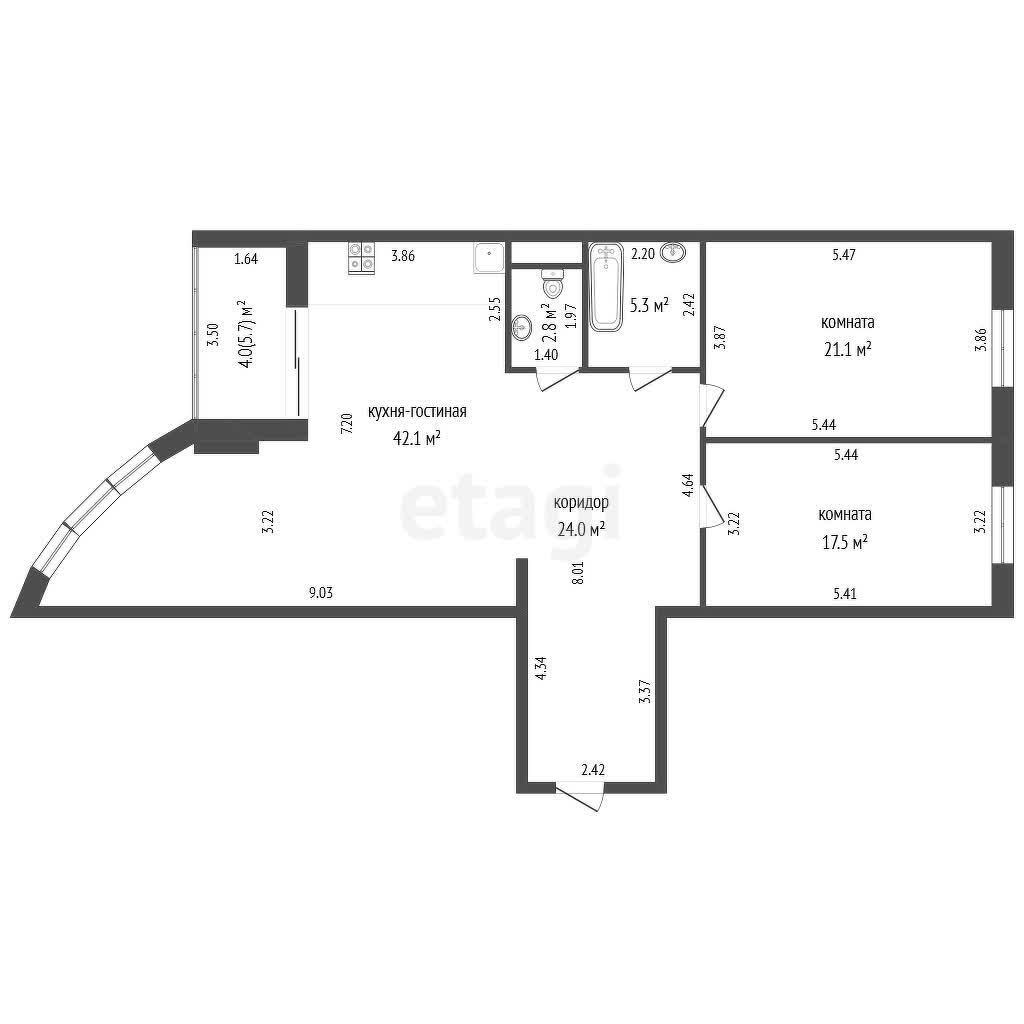 Просторная и светлая трёхкомнатная квартира в современном доме в районе «Лебяжий»