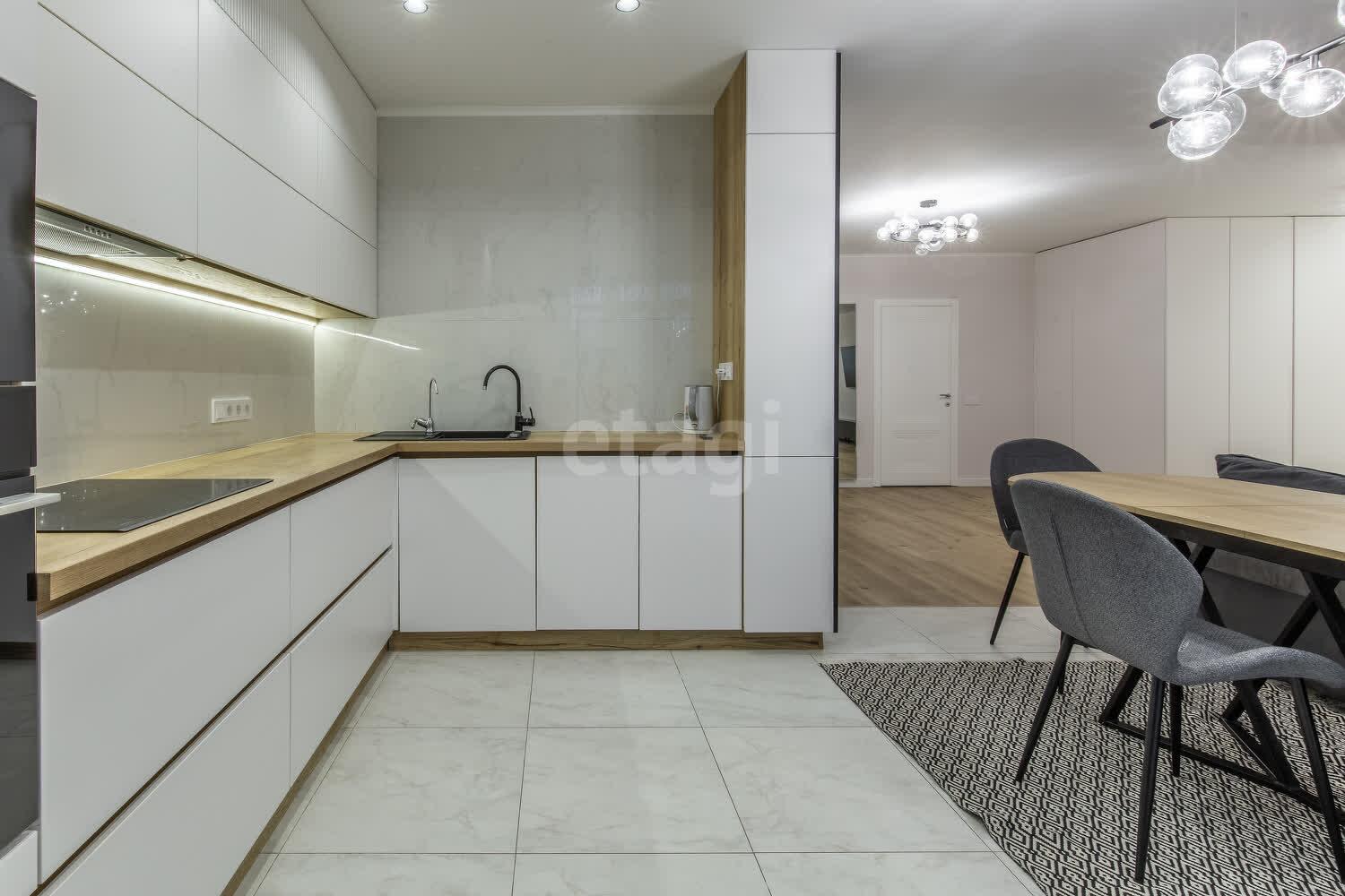 Качественная отделка: паркетная доска с влагостойким керамическим покрытием, импортная плитка в санузлах и на полу. Встроенное освещение, аккуратные линии интерьера и внимание к деталям создают ощущение гармонии.