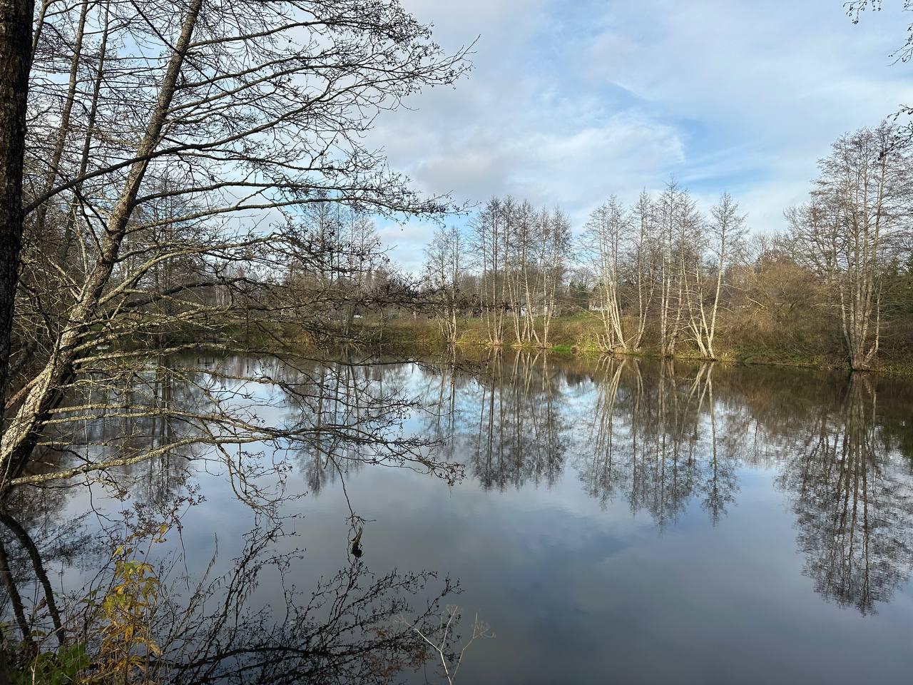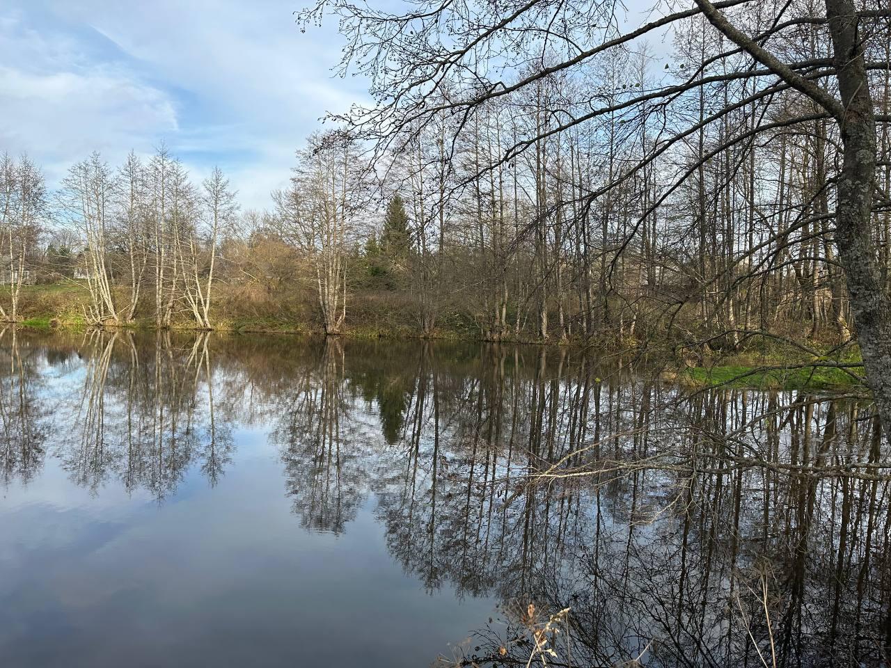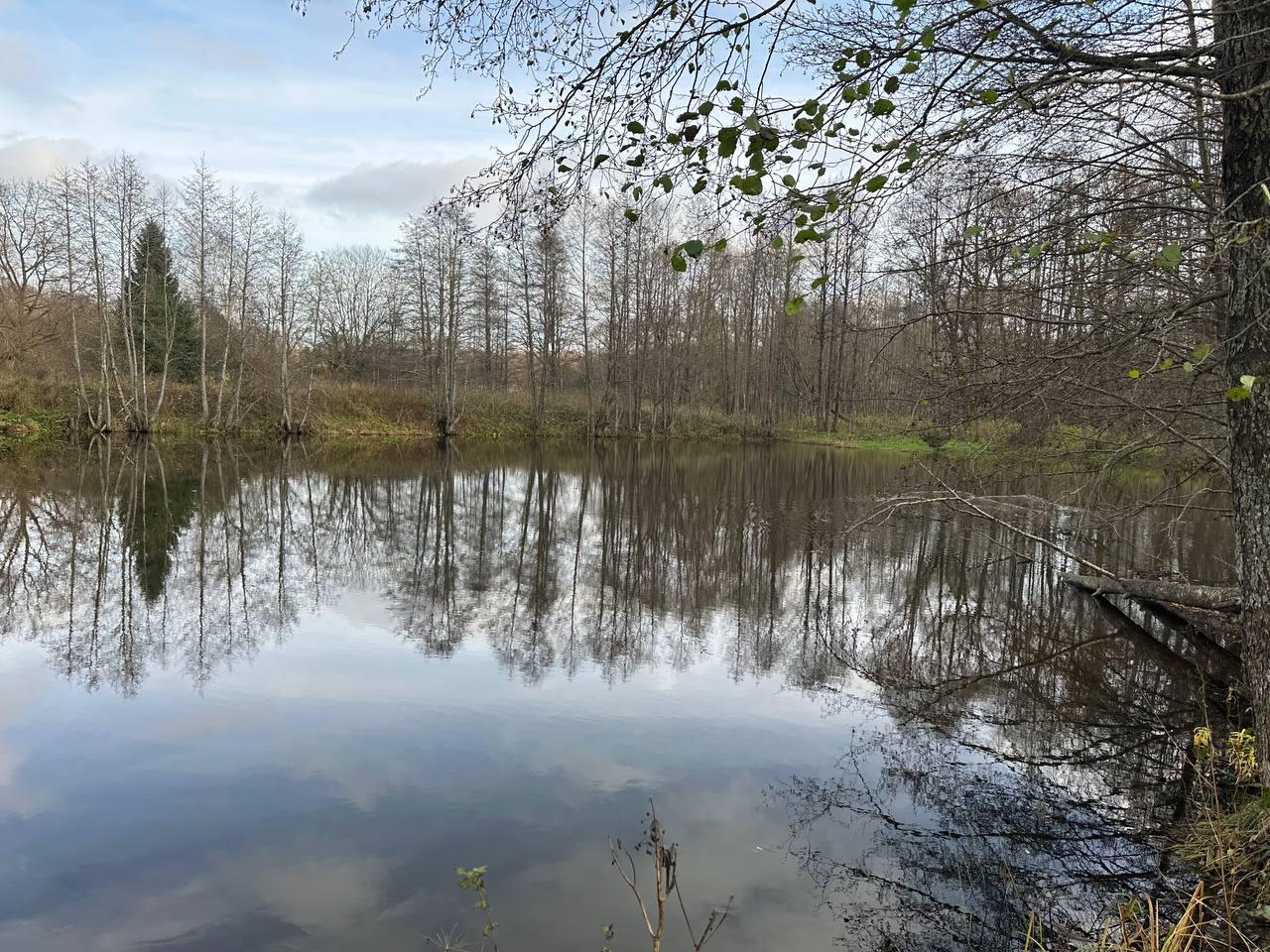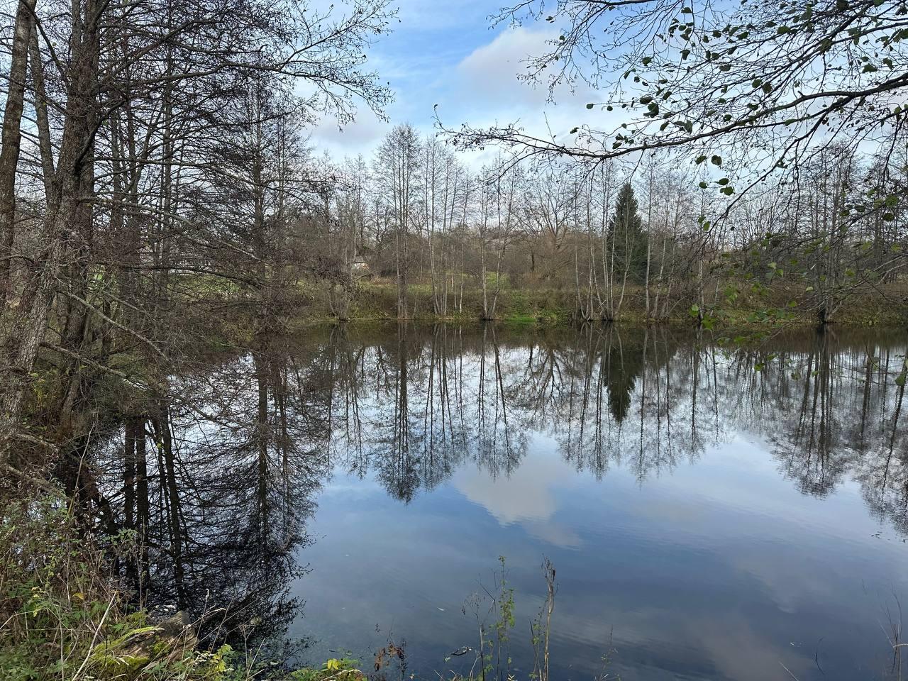 Участок располагается практически на хуторе (всего один сосед) и имеет выход к озеру, рядом протекает ручей.