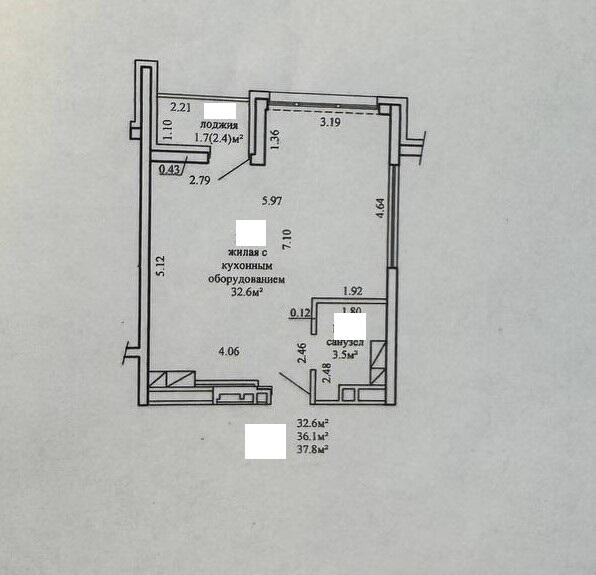 Площадь квартиры по СНБ 37,8 м2.