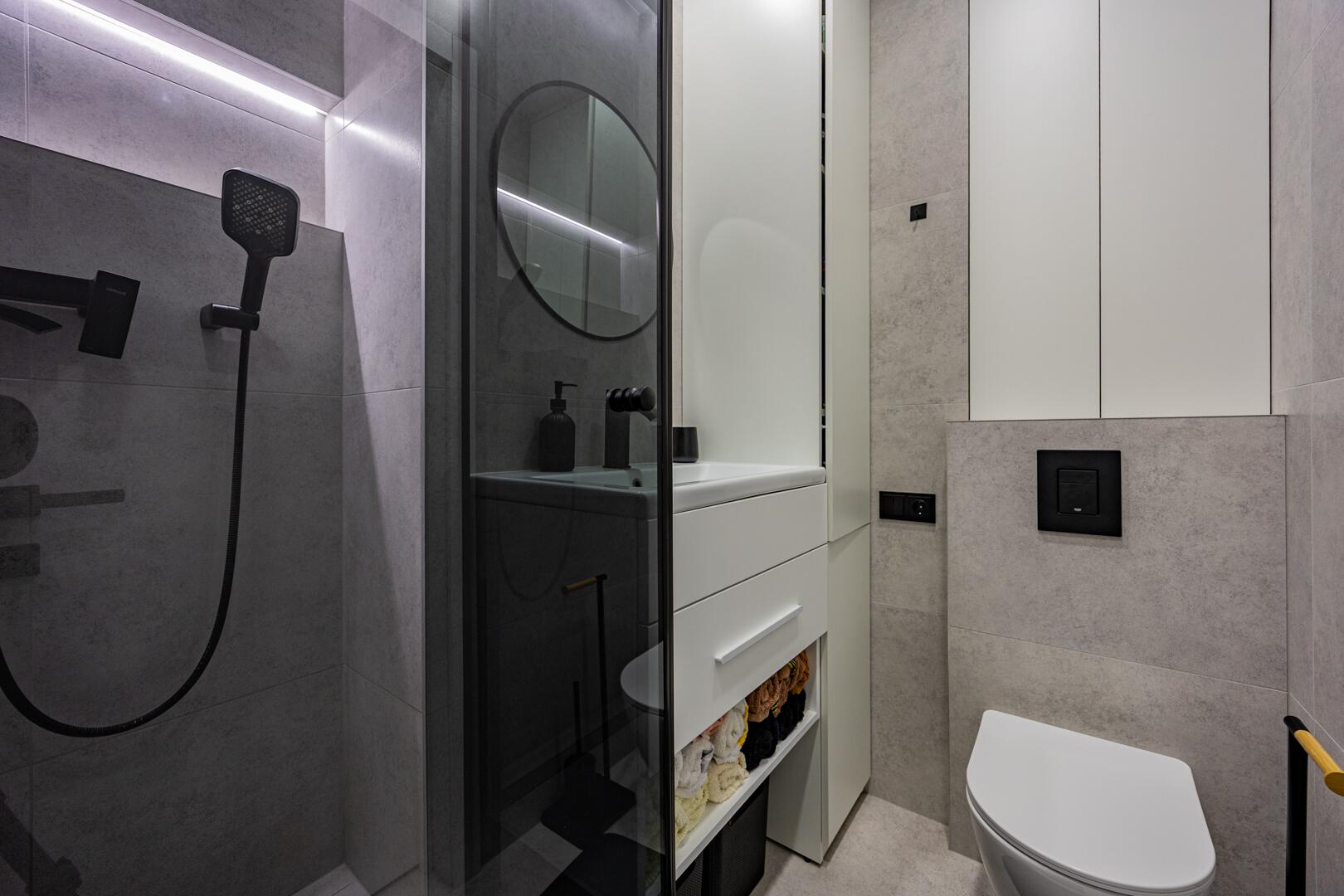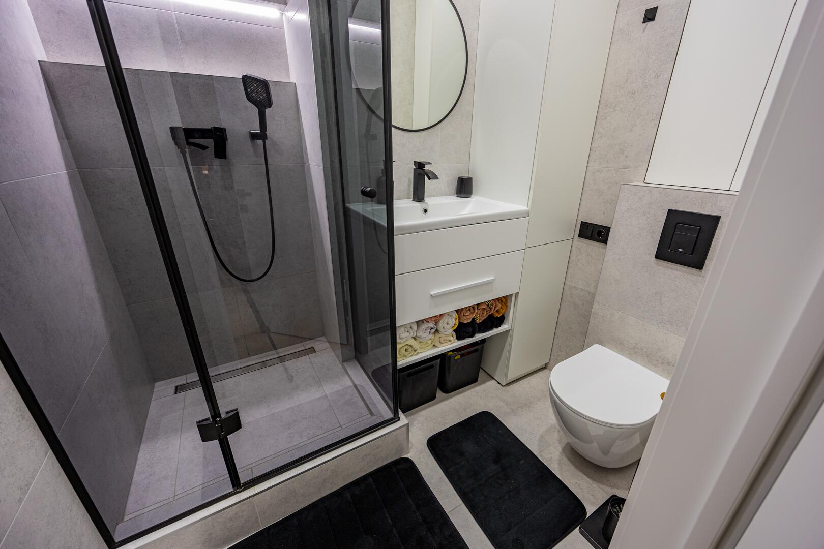 Совмещенный сан. узел с качественной современной сантехникой.