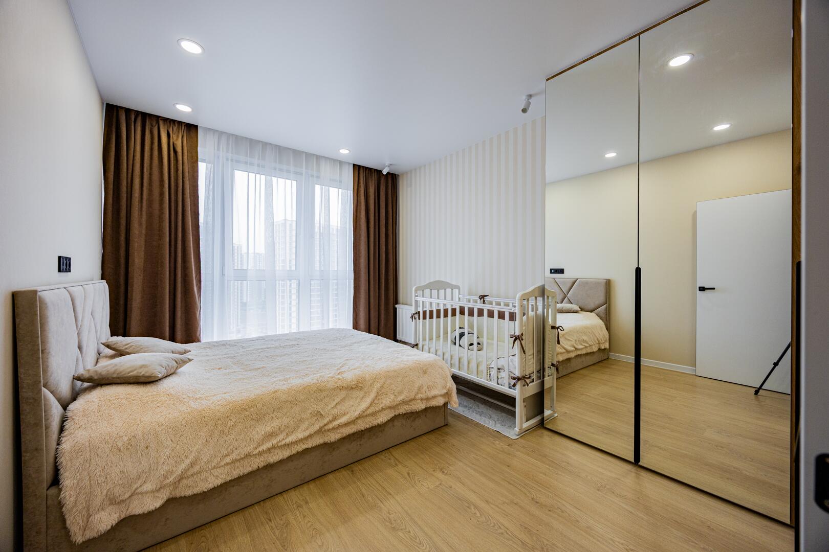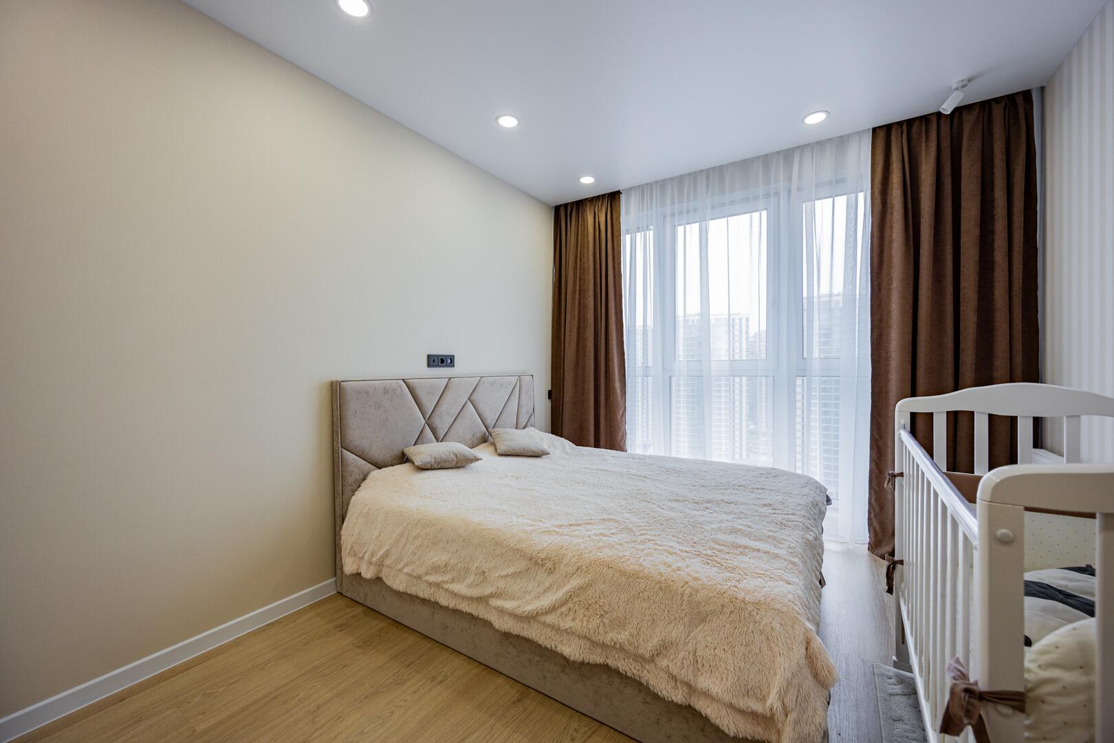 В квартире выполнен современный ремонт из качественных материалов.