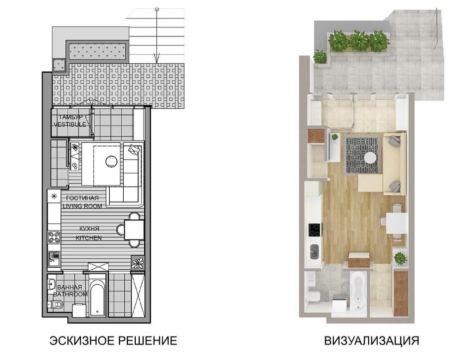 Свободная планировка, которая позволяет рационально использовать пространство.