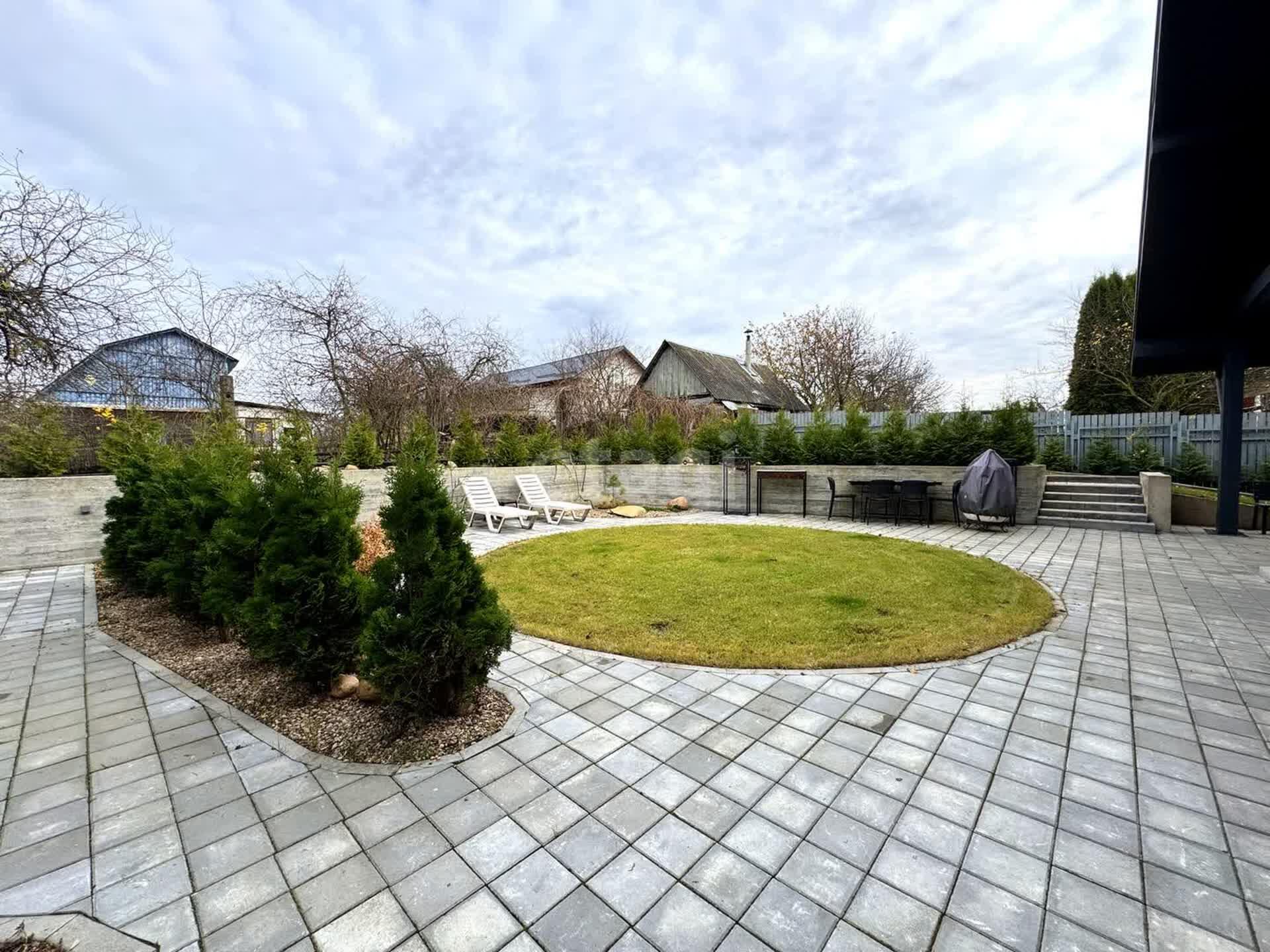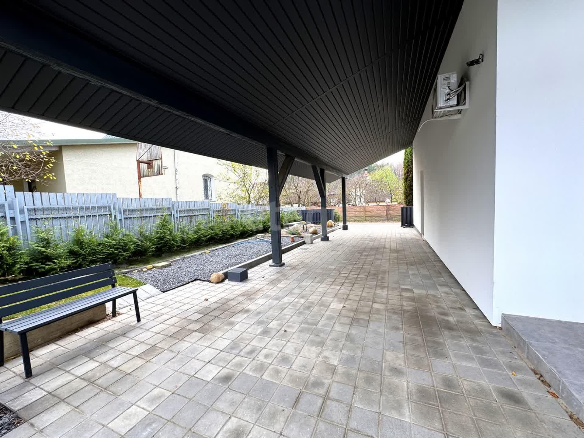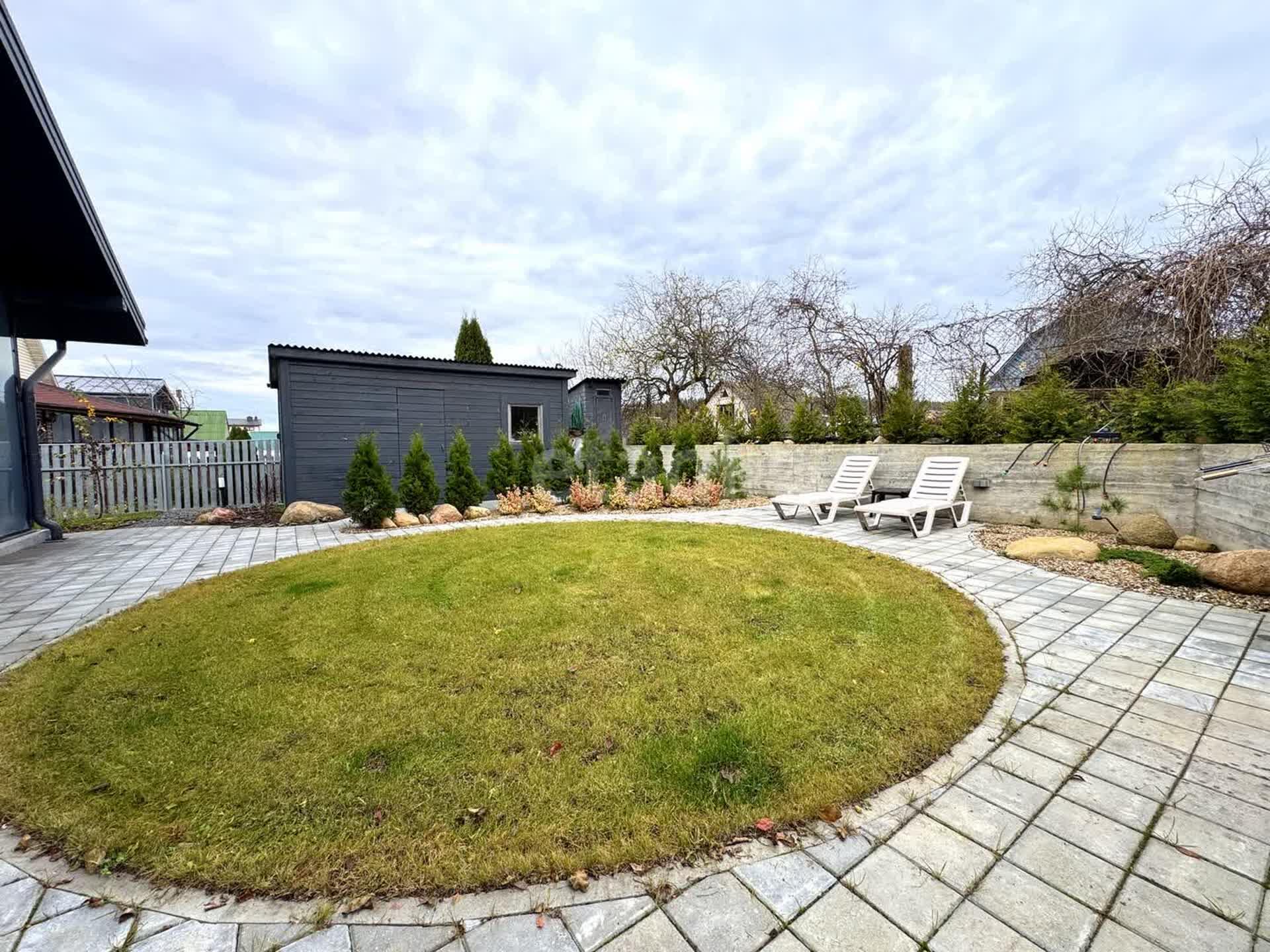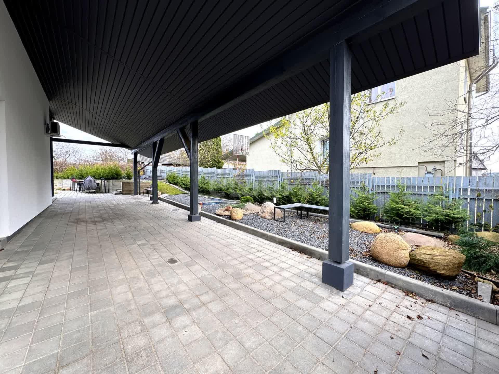 На улице вас ждет большая крытая терраса, где можно наслаждаться свежим воздухом и прекрасным видом на ухоженный газон. Участок с автополивом и зоной для отдыха, мангальной зоной и вместительной парковкой под навесом для 2-3 машин станет идеальным местом для семейных праздников и дружеских встреч.