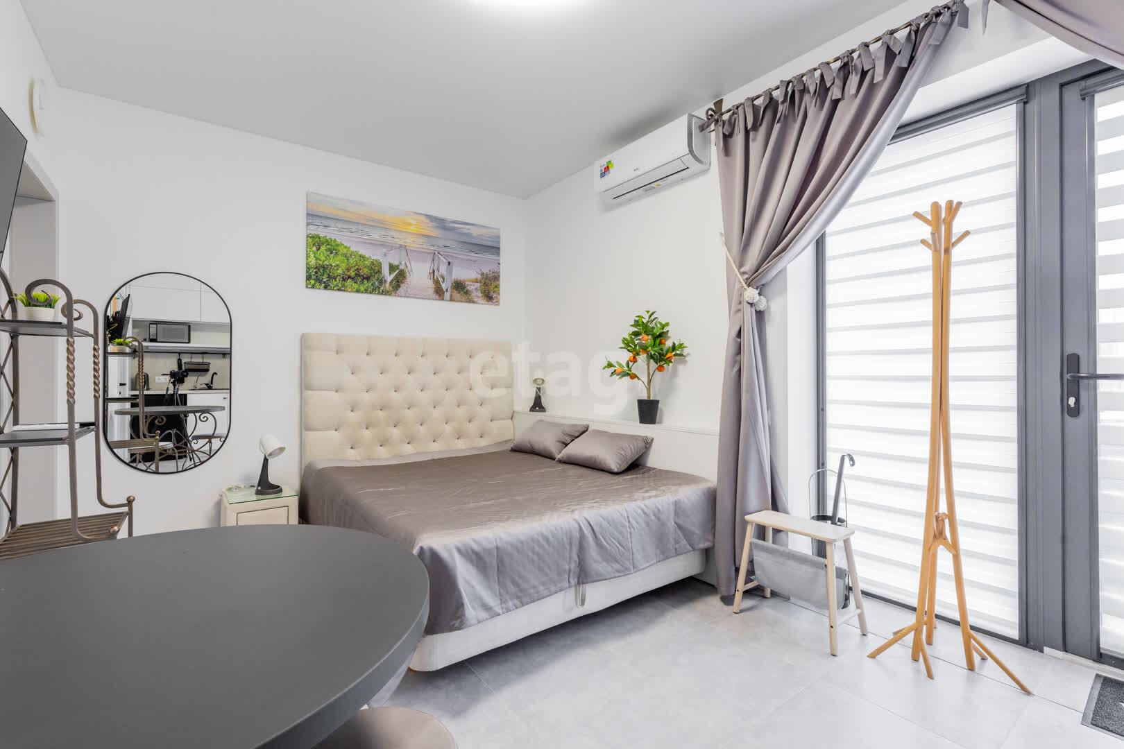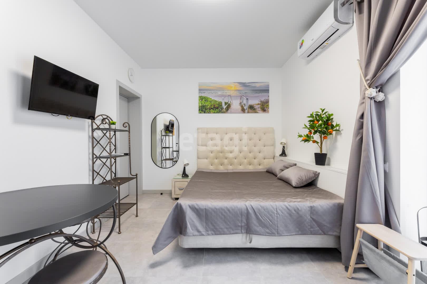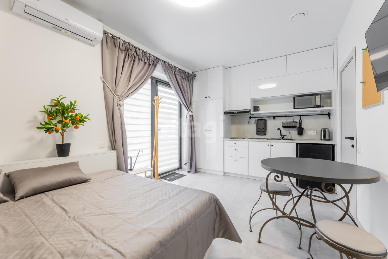 Вторая апарт-студия также не оставит вас равнодушными. Она оснащена двуспальной кроватью с внутренней зоной хранения, кухонной зоной с новой техникой и кондиционером, а также собственным санузлом с душевой и стиральной машиной.