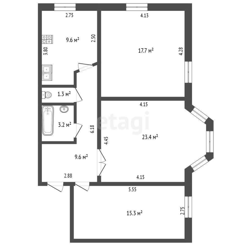 Просторная и функциональная планировка:— Общая площадь: 78,02 м2— Жилая площадь: 54,32 м2— Кухня: 9,6 м2— Три изолированные комнаты: 17,68 / 21,38 / 15,26 м2— Раздельный санузел