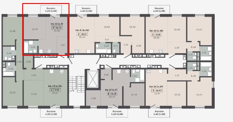 Площадь36.73 м2