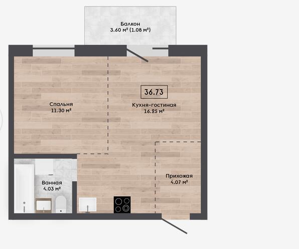 Общая площадь 36.73 м²