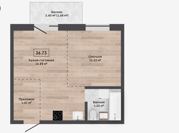 Общая площадь 36.73 м²