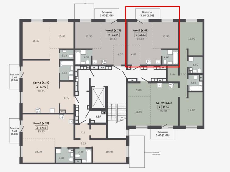 Площадь36.73 м2
