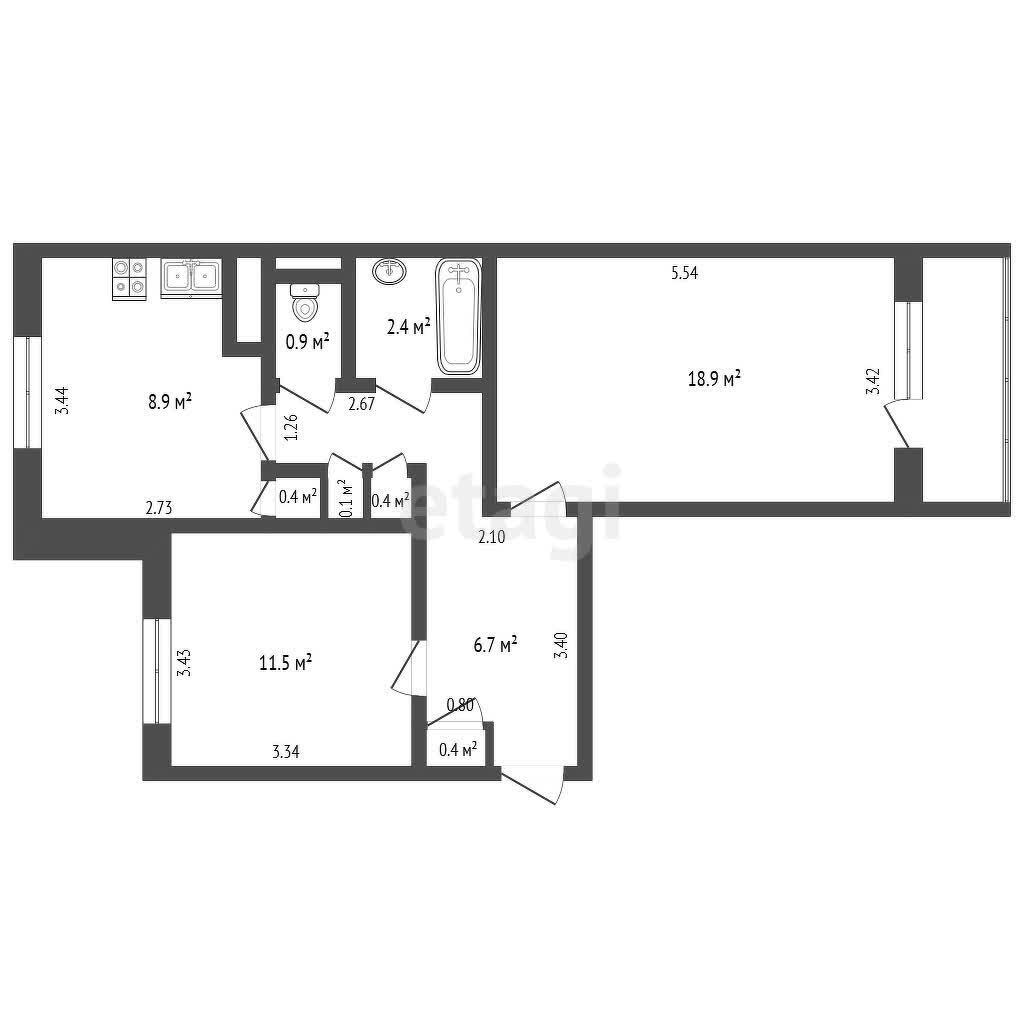 Простор и свет: общая площадь 54.5 м2, жилая 30.4 м2 – это пространство, где каждый член семьи найдет свое уютное место.