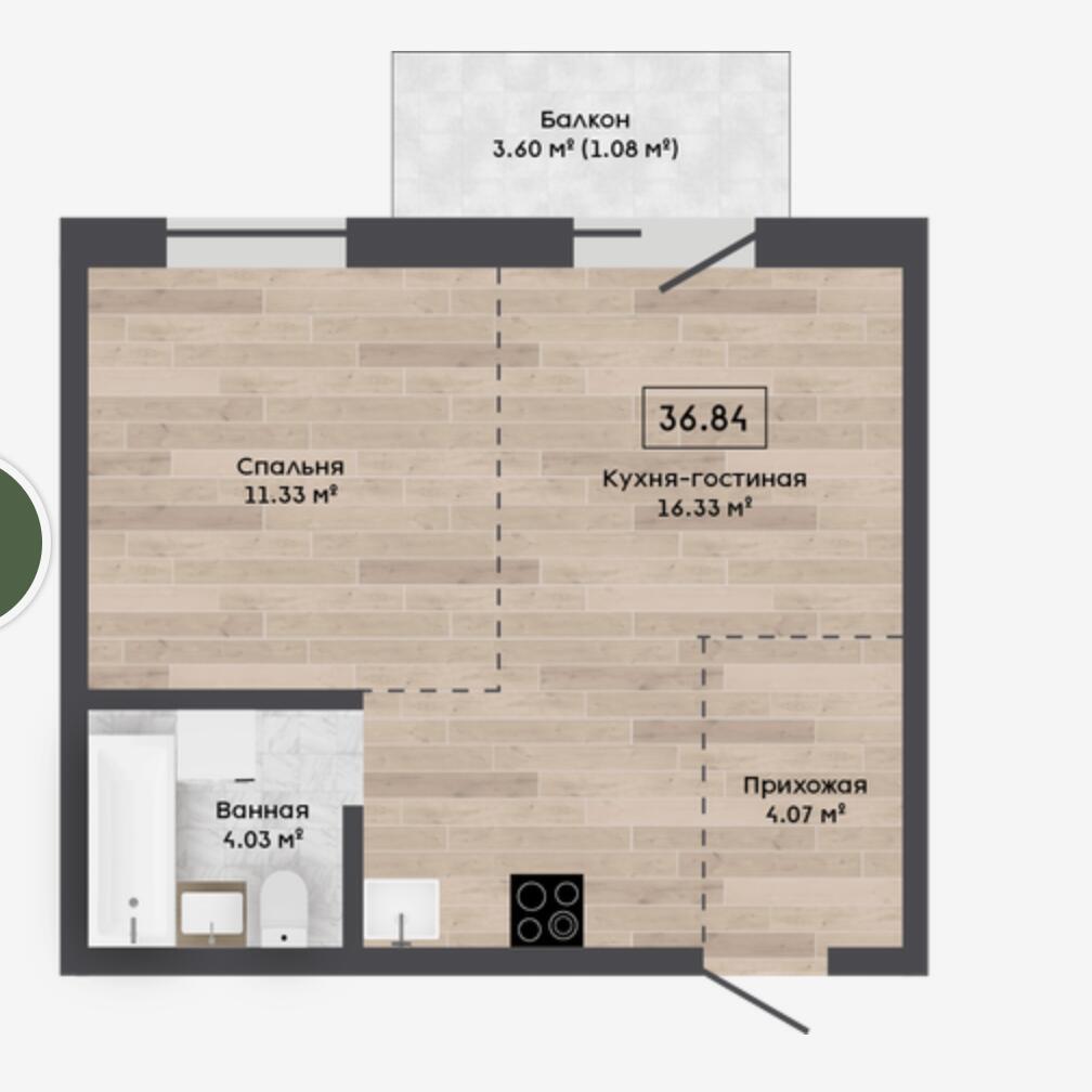 Общая площадь 37 м²