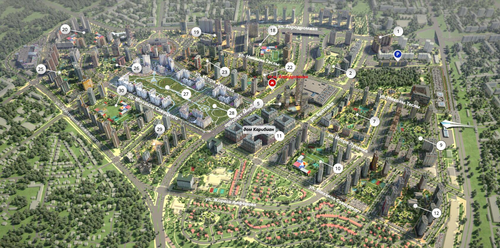 В шаговой доступности ст.м. «Аэродромная». Рядом парк с велодорожками, международный финансовый центр и ТЦ АВИА МОЛЛ.