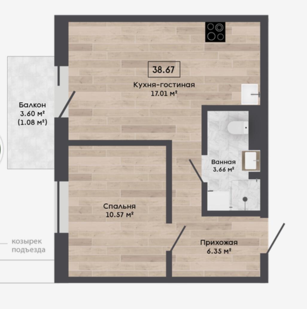 Общая площадь 39 м²