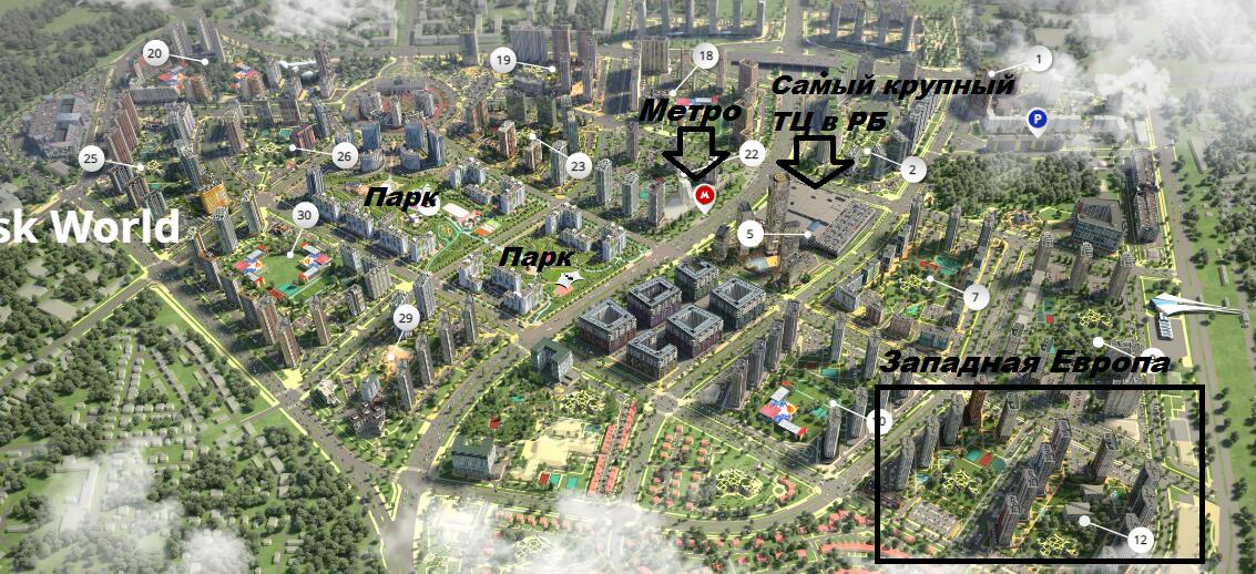 · В пешей доступности будет вся собственная инфраструктура Minsk World – взрослая и детская поликлиника, медицинский центр, кафе и магазины, парковки и заправки, спортивные залы и фитнес-центры