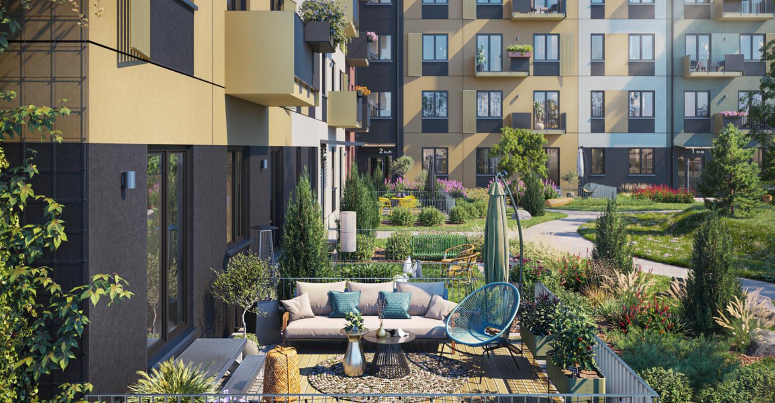 Продуманные планировки: Уникальные квартиры с личными террасами и участками на первом этаже, а также квартиры с мастер-спальнями, гардеробными и кабинетом. Кроме того, для каждой квартиры предусмотрена кладовая в техническом подполье, а для некоторых — кладовые на этажах.