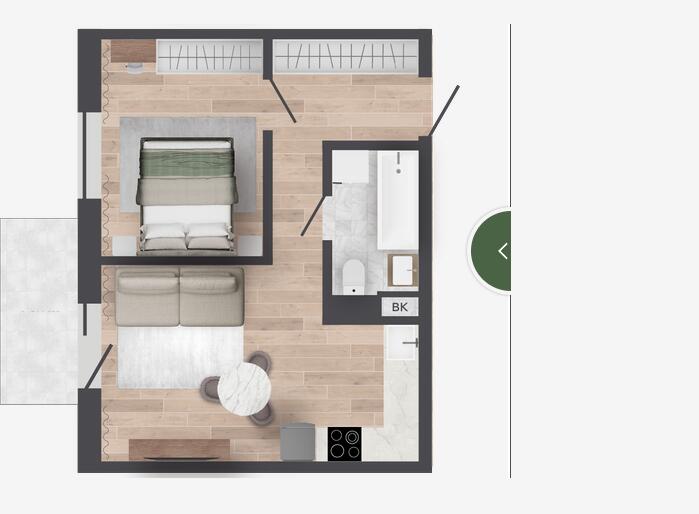 Пол и стены- керамогранит, 3 цвета на выбор Ванна Унитаз подвесной Полотенцесушитель Подвесная тумба с накладным умывальником Зеркало с подсветкой Передовая технология строительства: Дом будет возведен с использованием технологии «Префаб монолит», которая гарантирует высокое качество и долговечность. Контролируемое заводское производство — это идеальная геометрия стен, гладкость поверхностей и отличная шумоизоляция.