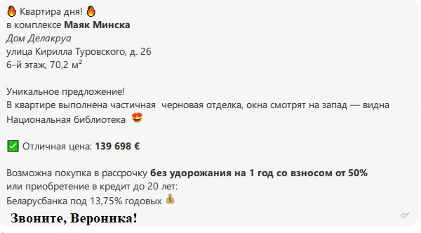 Стоимость актуальна на дату размещения 13.11.2025. Подробную актуальную информацию уточняйте по телефону.