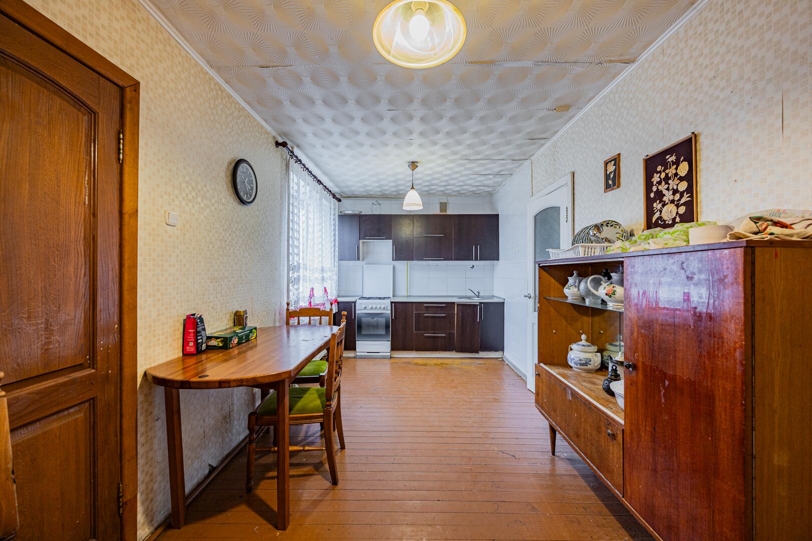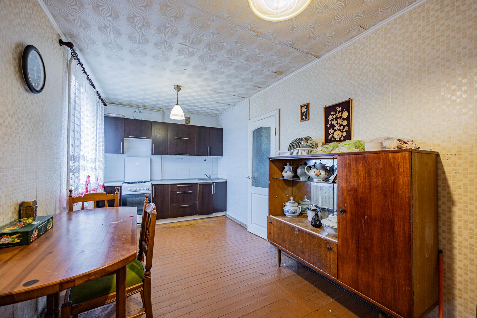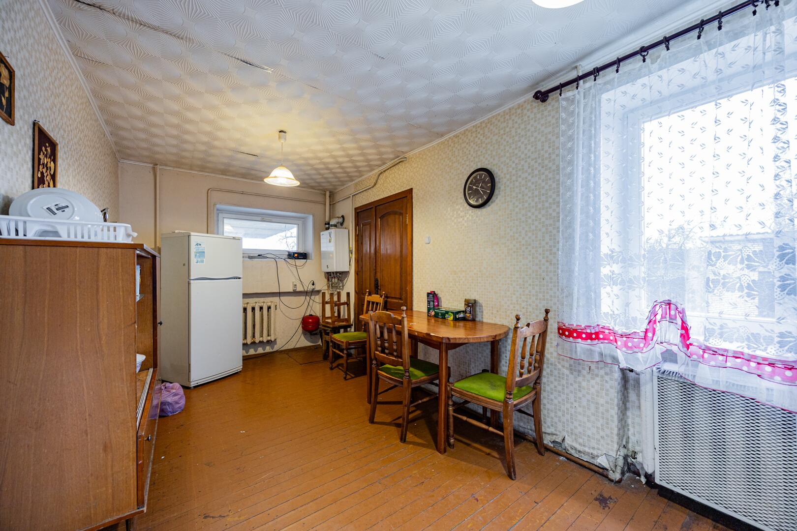 Дом построен в 1998 году, кирпичный, общей площадью 104,8 м2. Внутри квартира состоит из коридора, просторной кухни 9,8 м2, раздельного санузла и 4 жилых комнат (20,3 м2, 20,0 м2, 11,9 м2, 11,4 м2). Перекрытия железобетонные, фундамент из железобетонных блоков, полы дощатые. На всех окнах установлены стеклопакеты. Входная дверь металлическая, межкомнатные двери деревянные. Крыша накрыта шифером. Дорога рядом с домом асфальтированная.
