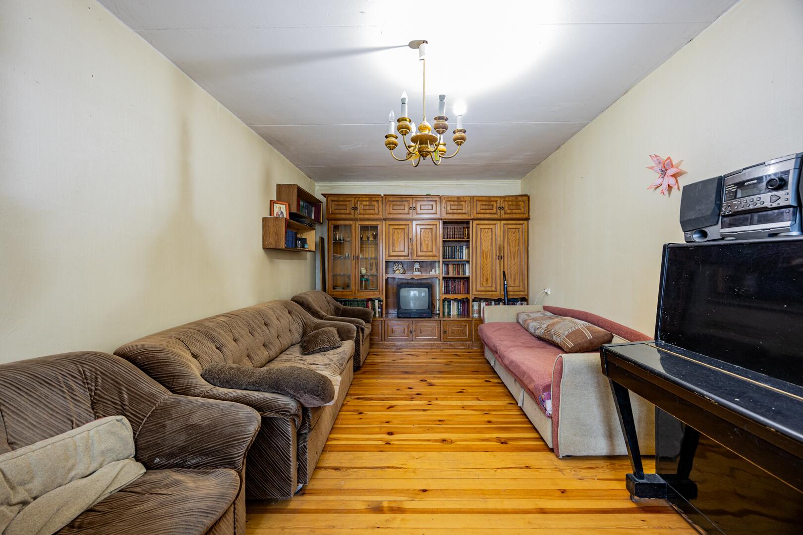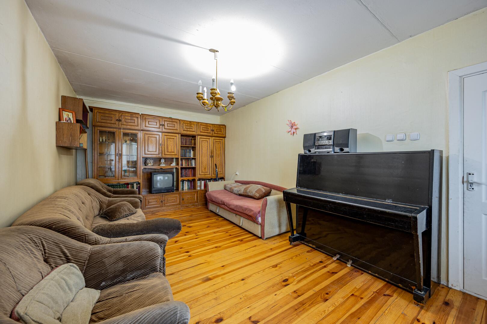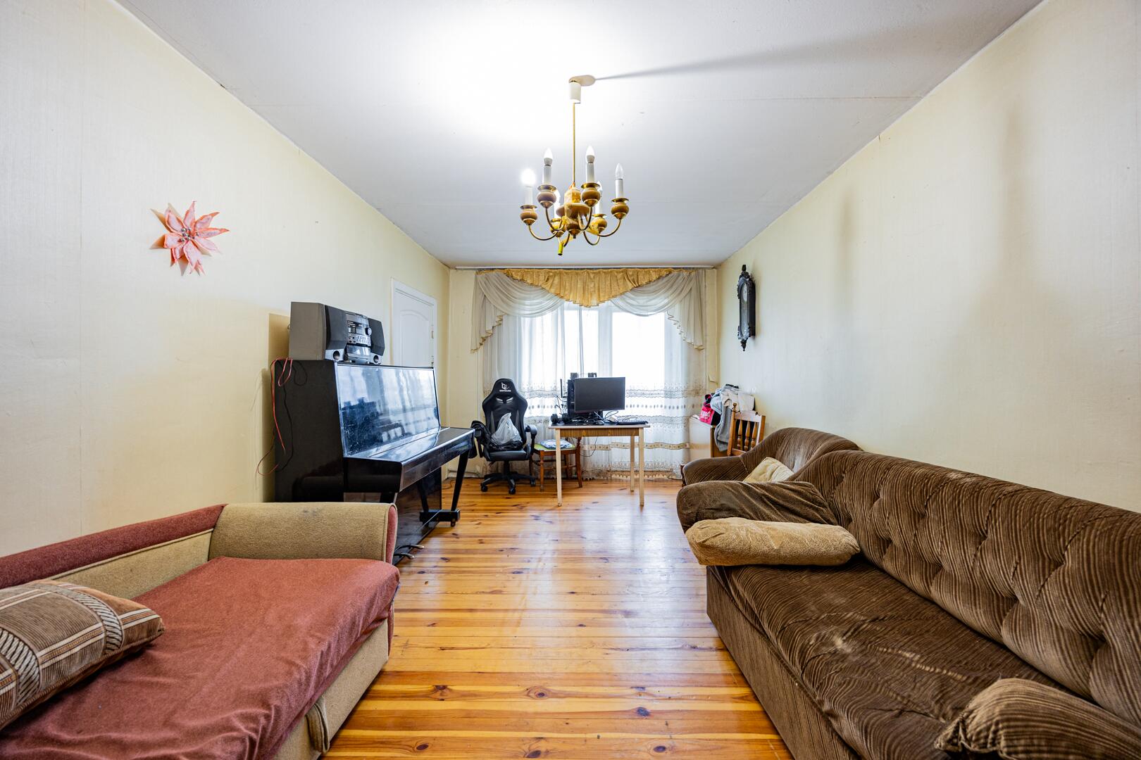Дом построен в 1998 году, кирпичный, общей площадью 104,8 м2. Внутри квартира состоит из коридора, просторной кухни 9,8 м2, раздельного санузла и 4 жилых комнат (20,3 м2, 20,0 м2, 11,9 м2, 11,4 м2). Перекрытия железобетонные, фундамент из железобетонных блоков, полы дощатые. На всех окнах установлены стеклопакеты. Входная дверь металлическая, межкомнатные двери деревянные. Крыша накрыта шифером. Дорога рядом с домом асфальтированная.