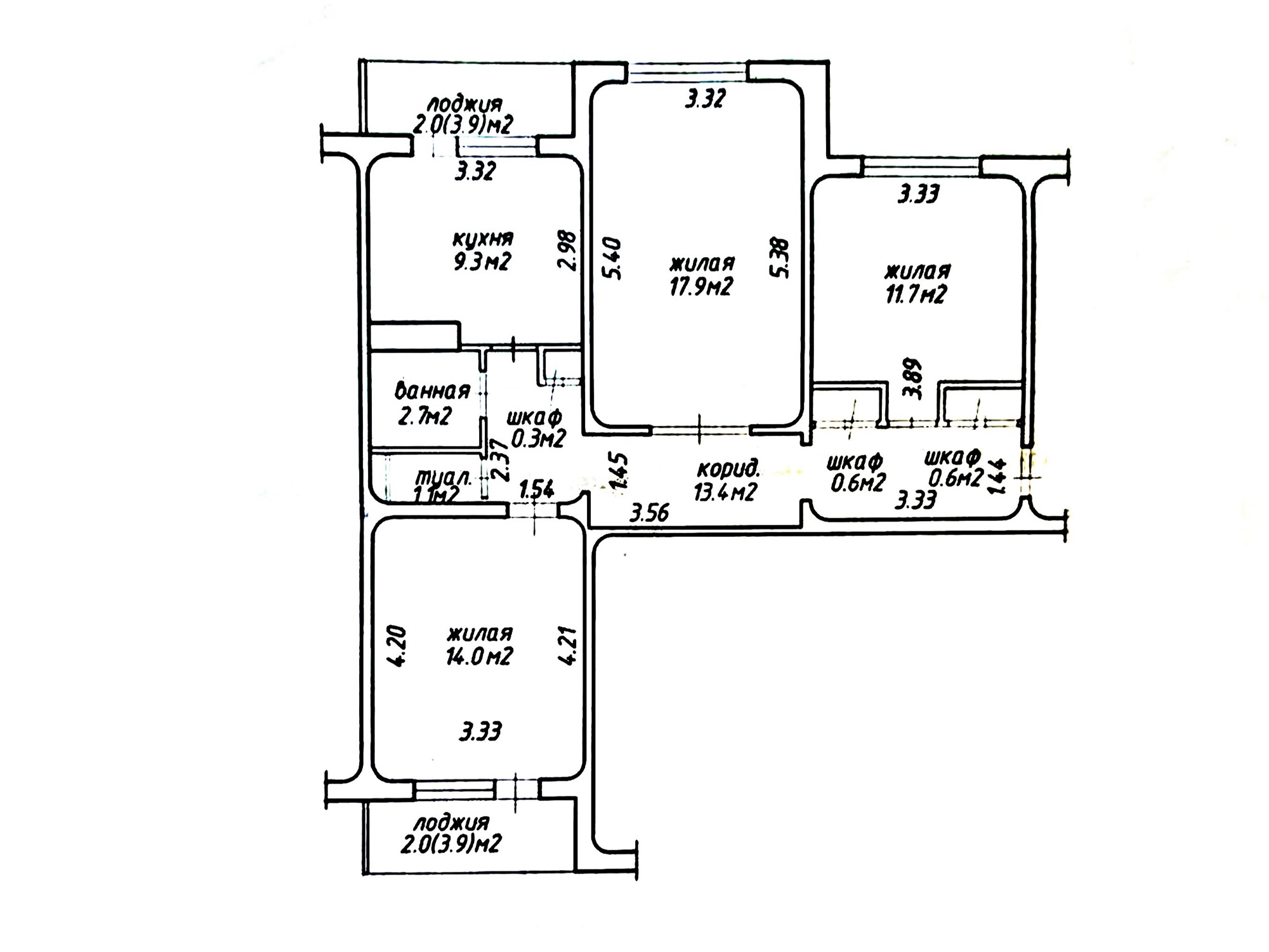 Улучшенный проект. Просторная квартира общей площадью 71.6м2 (по СНБ 75.6м2). Жилая 43.6м2 состоит из трех изолированных комнат (17.9м2 + 14.0м2 + 11.7м2), выходящих на две стороны дома. Большая кухня 9.3м2. Квартира расположена на 5 этаже 9-ти этажного панельного дома (1978 г.) Раздельный санузел. Вместительный коридор 13.4м2. Две застекленные лоджии. Высота потолков 2.5м.