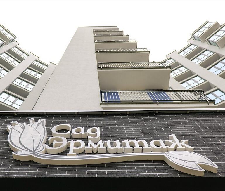 Дом «Сад Эрмитаж», в центре квартала «Хэппи Плэнет» . Всего 77 квартир, стильная архитектура, высота потолков более 5-ти метров, эксклюзивное дизайнерское лобби. Панорамные окна всех квартир жилого дома обращены на парк.