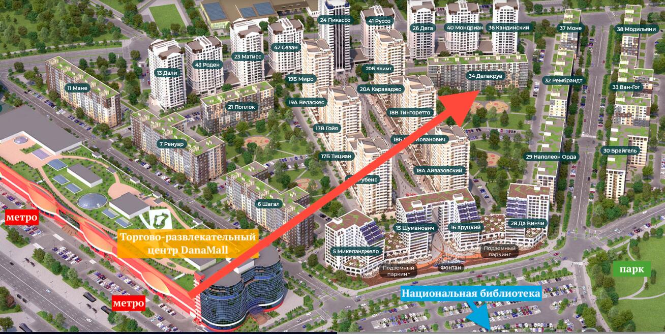 Дом уже сдан и расположен рядом с метро, Национальной библиотекой и парковой зоной!