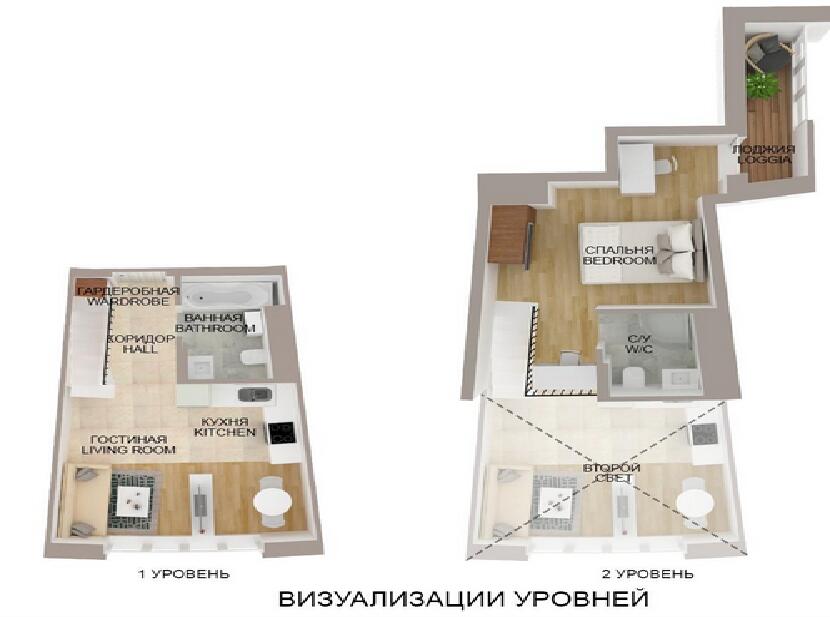 Антресольный этаж даёт дополнительное пространство: можно оборудовать уютную спальню, кабинет или зону релакса. Площадь антресоли не превышает 40% от основного помещения.