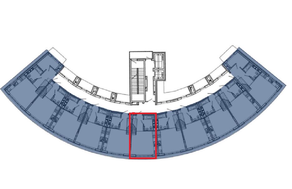 Дугообразная форма здания плавно вписывается в природный ландшафт и повторяет линии парковых зон.