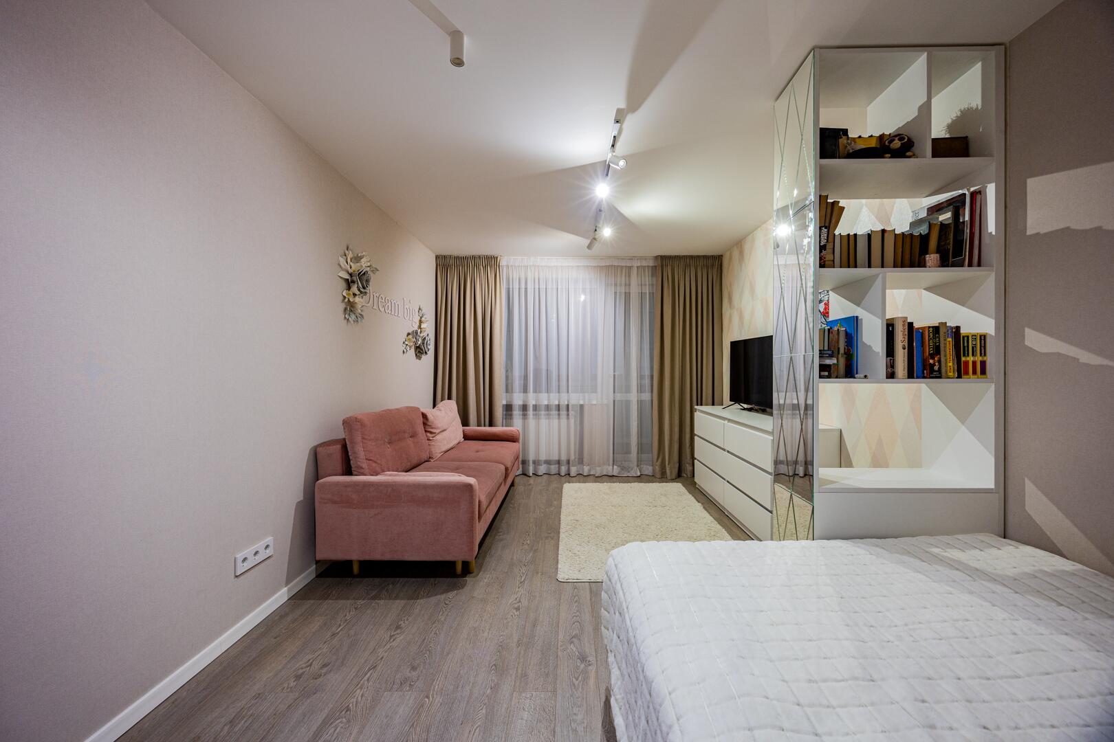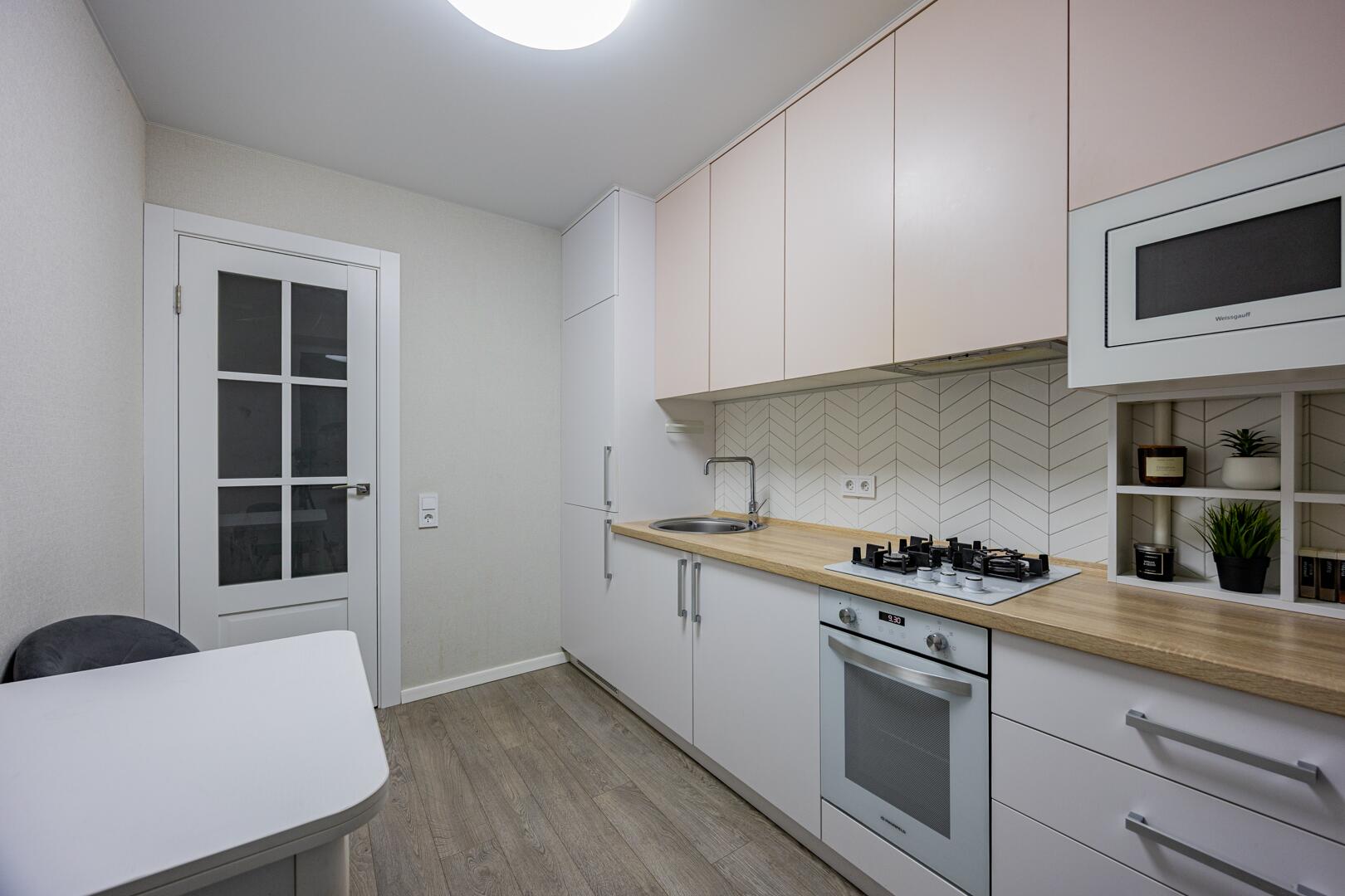 - Оборудованная кухня со встроенной мебелью и техникой.