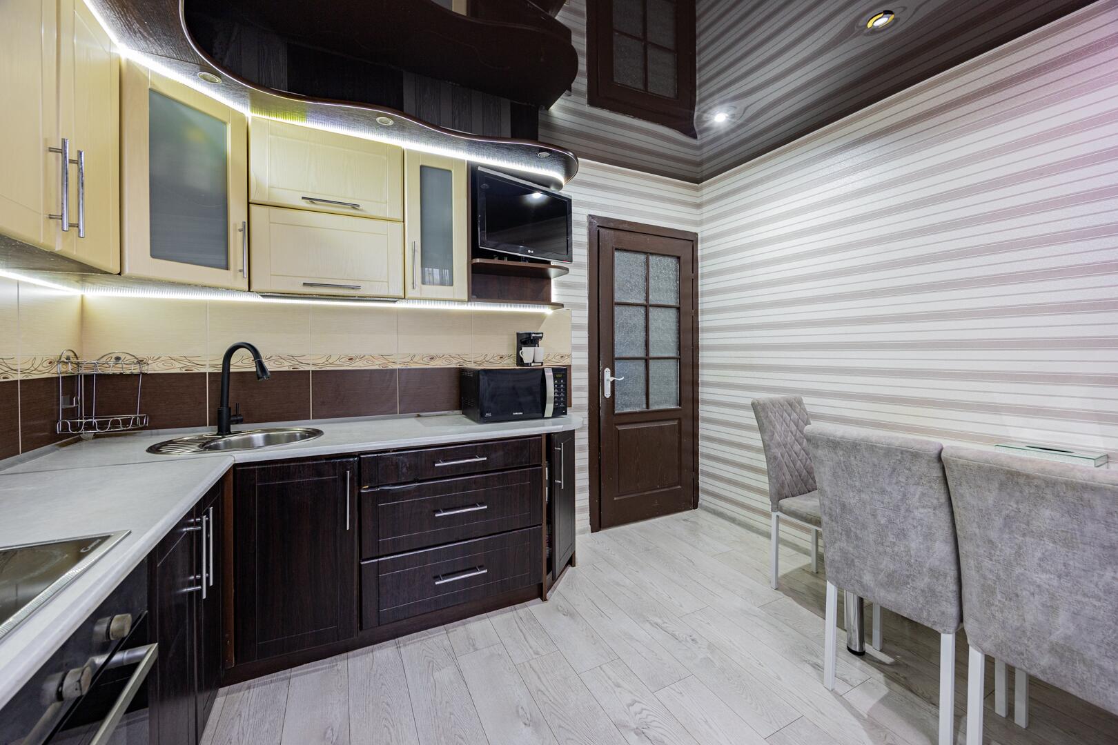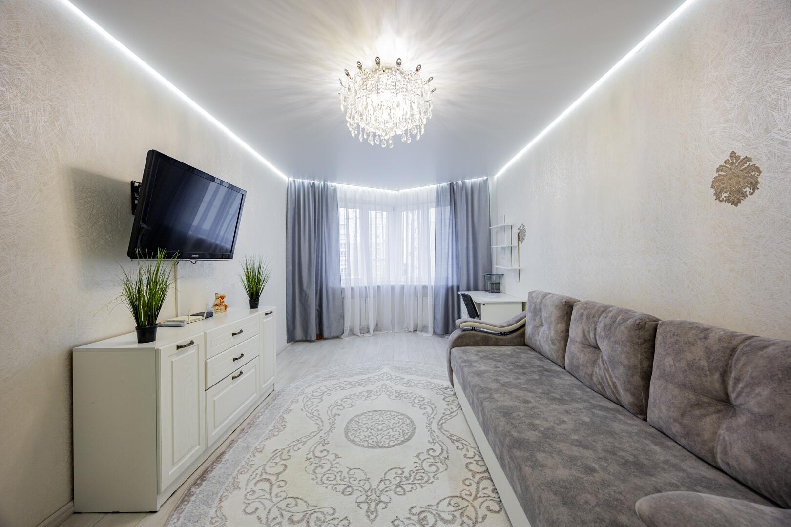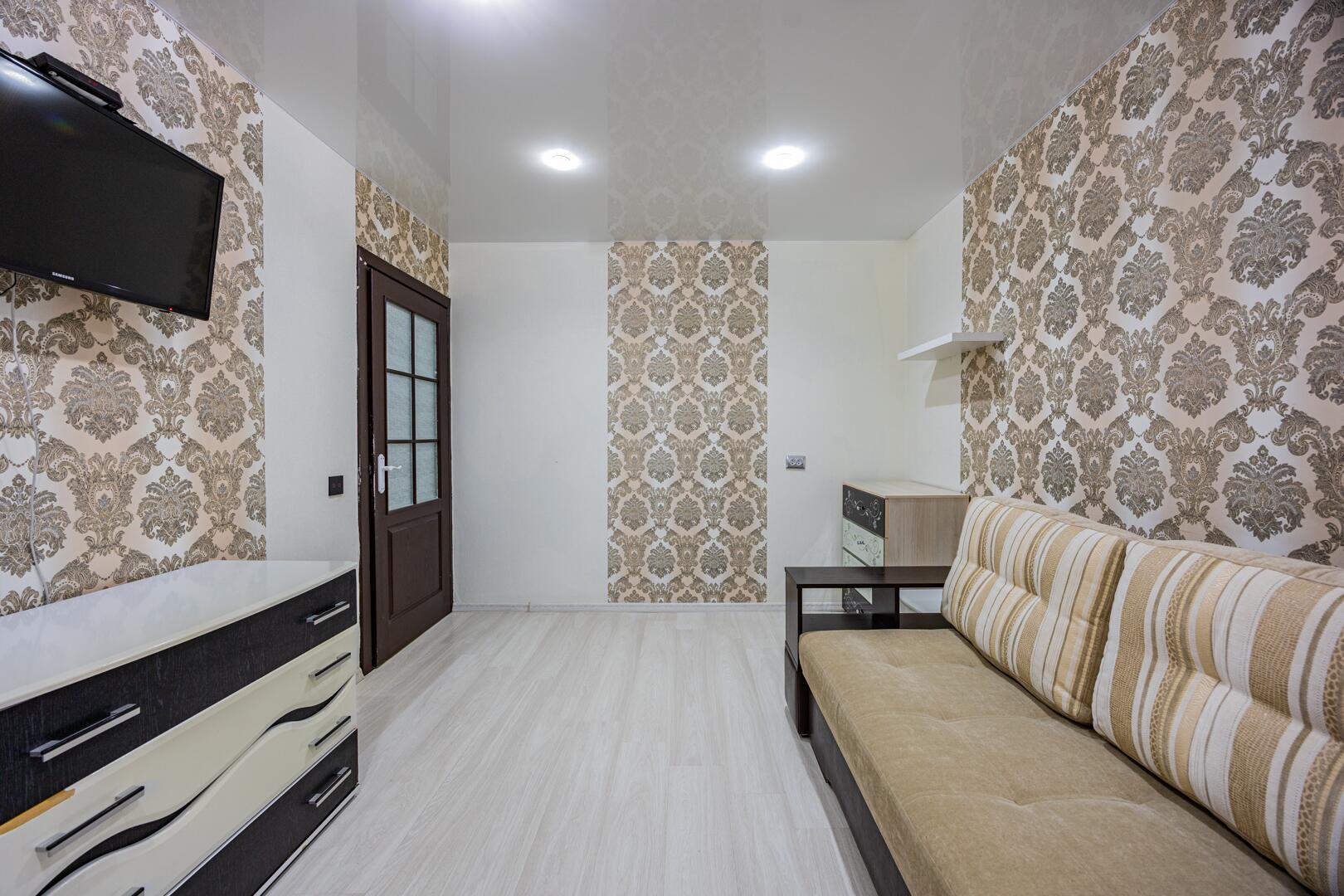 ∙ На полу ламинат, стены оклеены обоями, натяжные потолки.