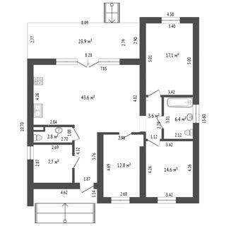 Наружные стены: газосиликат 400 мм, утепление пенопластом 50 мм Фундамент: свайно-ростверковый, утеплённый Крыша: монолитная железобетонная плита перекрытия, мягкая кровля Фундамент под забор: ленточный Коммуникации