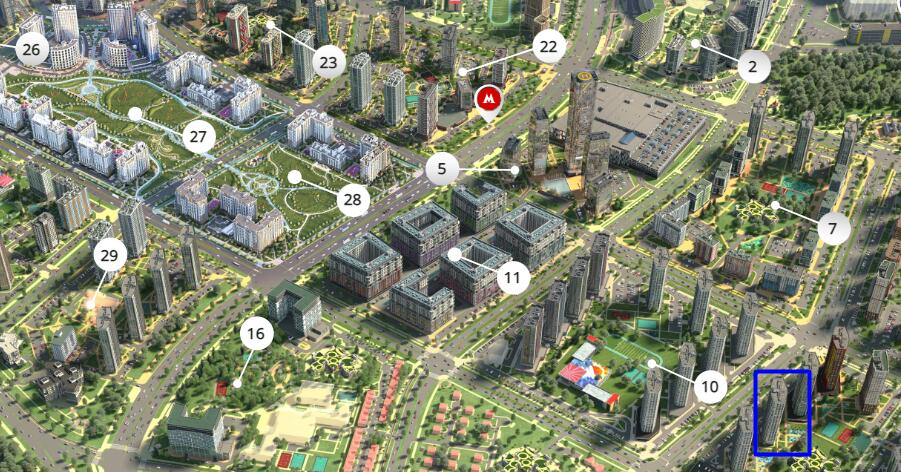 Зеленая парковая зона, международный финансовый центр и крупнейший торговый центр Авиа Молл в центре комплекса в пешей доступности будет вся инфраструктура Minsk World – взрослая и детская поликлиника, медицинский центр, кафе и магазины, парковки, спортивные залы и фитнес-центры.