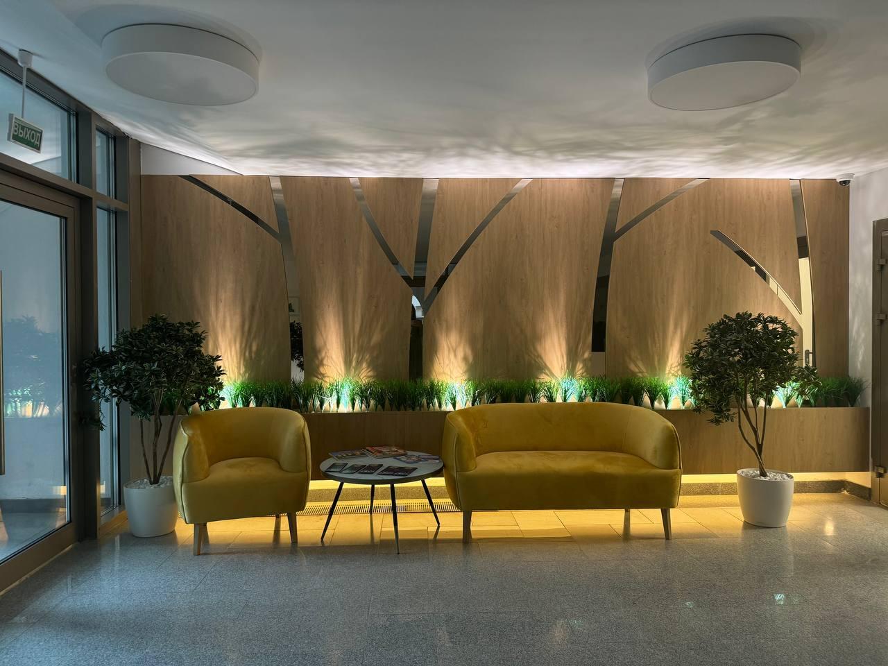 - В доме есть дизайнерское лобби с местом отдыха для гостей и туалетной комнатой