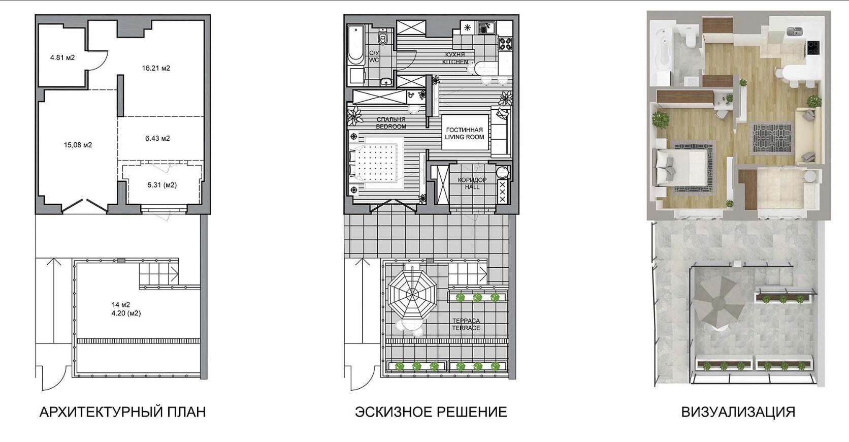 Жилая площадь 46 м²