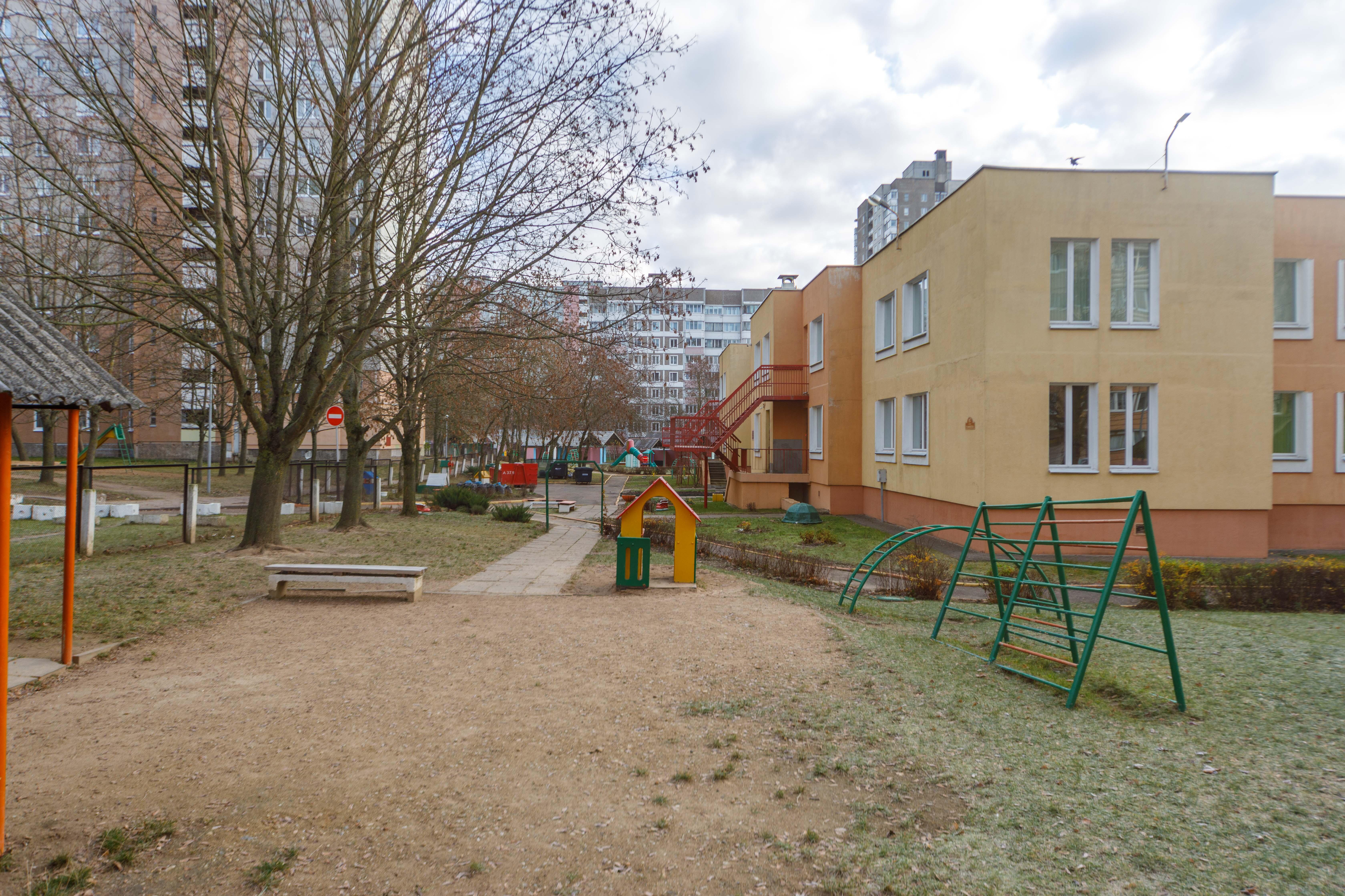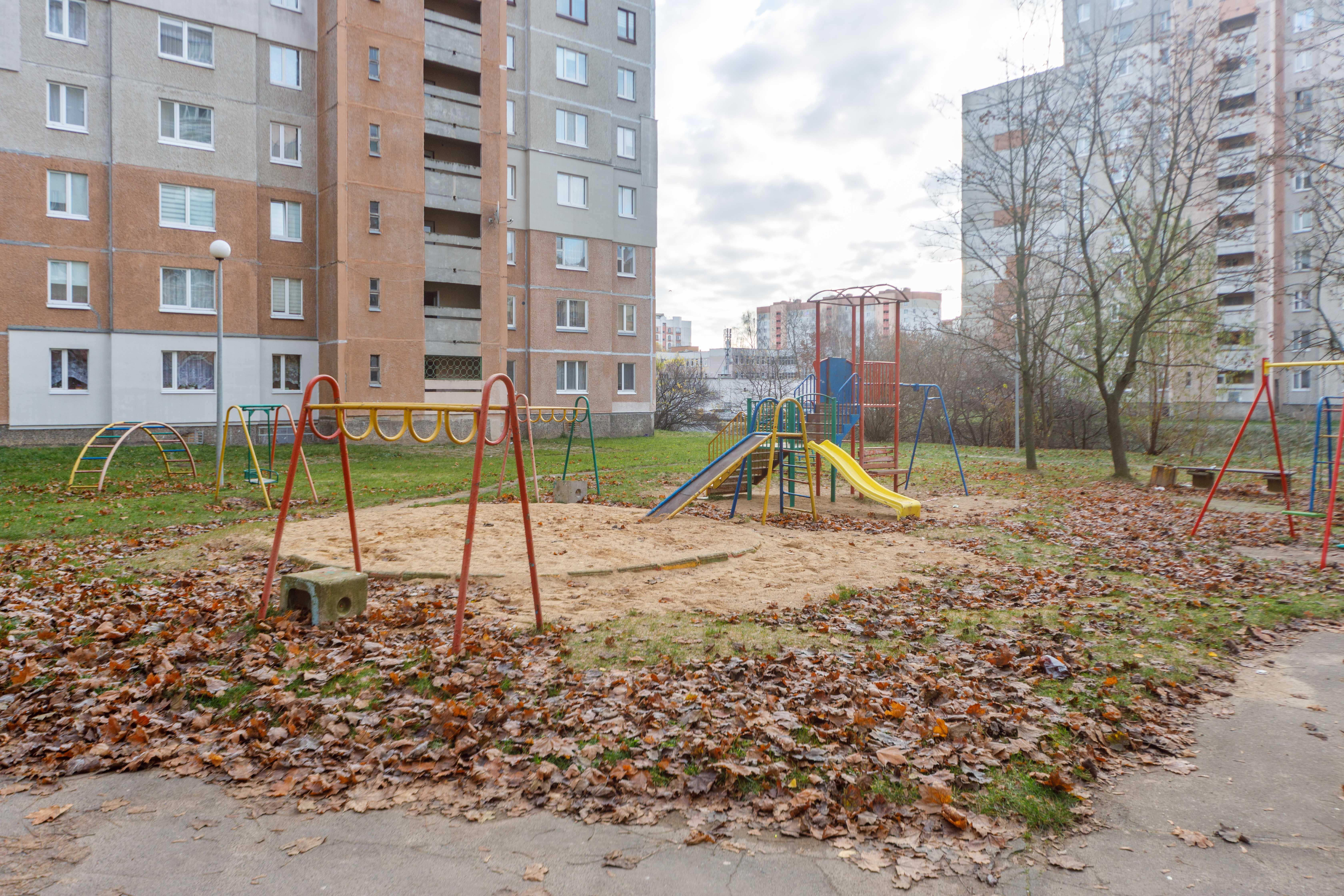 Безопасный двор без машин. Можно не волноваться из-за проезжающих мимо автомобилей и отпускать на прогулки детей, не опасаясь, что они могут выбежать на дорогу.