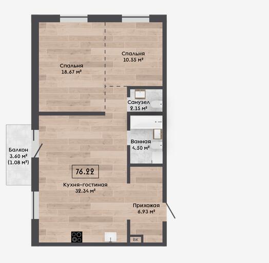 Квартира с кладовой 4.06 м2.