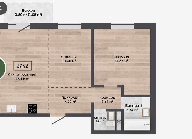 Квартира с кладовой 3.66м2.