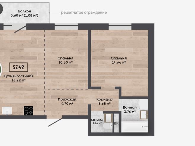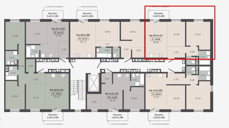 Квартира с кладовой 3.46 м2.