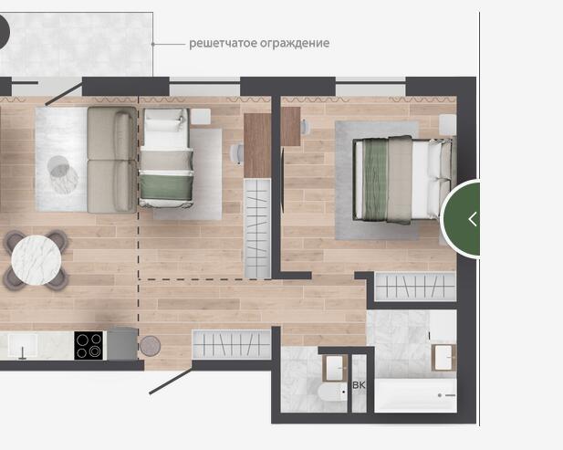 Продуманные планировки: Уникальные квартиры с личными террасами и участками на первом этаже, а также квартиры с мастер-спальнями, гардеробными и кабинетом. Кроме того, для каждой квартиры предусмотрена кладовая в техническом подполье, а для некоторых — кладовые на этажах.