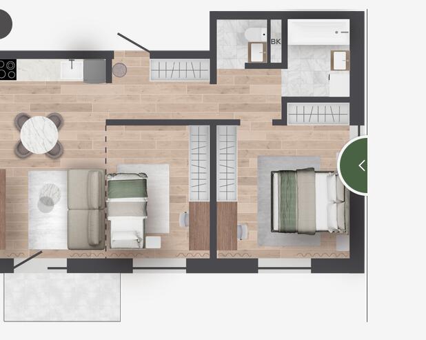 Продуманные планировки: Уникальные квартиры с личными террасами и участками на первом этаже, а также квартиры с мастер-спальнями, гардеробными и кабинетом. Кроме того, для каждой квартиры предусмотрена кладовая в техническом подполье, а для некоторых — кладовые на этажах.