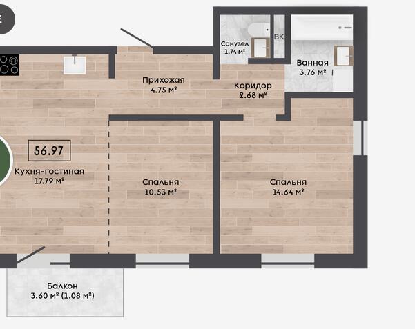 Квартира с кладовой 3.3 м2.