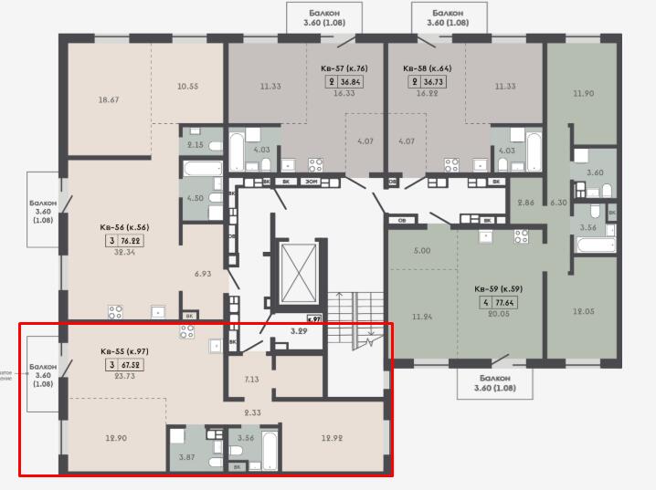 Квартира с кладовой 3.29 м2.