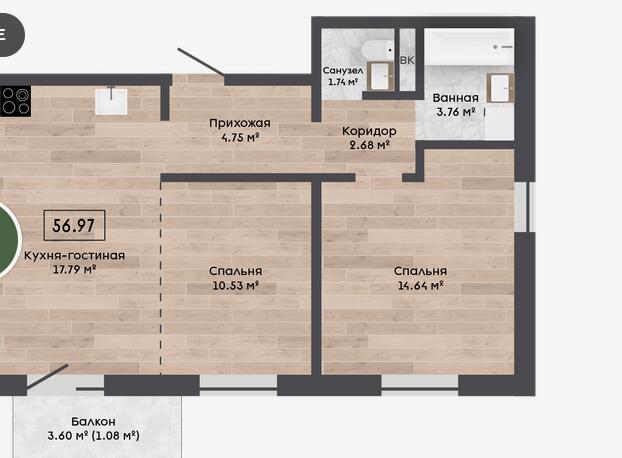 Квартира с кладовой 3.3 м2.