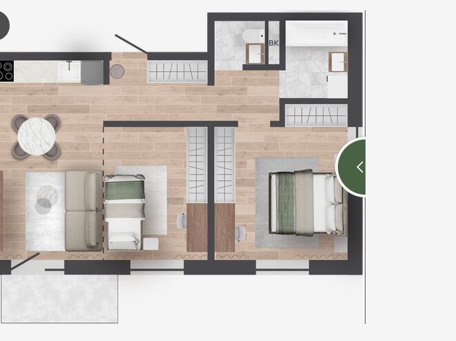 Продуманные планировки: Уникальные квартиры с личными террасами и участками на первом этаже, а также квартиры с мастер-спальнями, гардеробными и кабинетом. Кроме того, для каждой квартиры предусмотрена кладовая в техническом подполье, а для некоторых — кладовые на этажах.