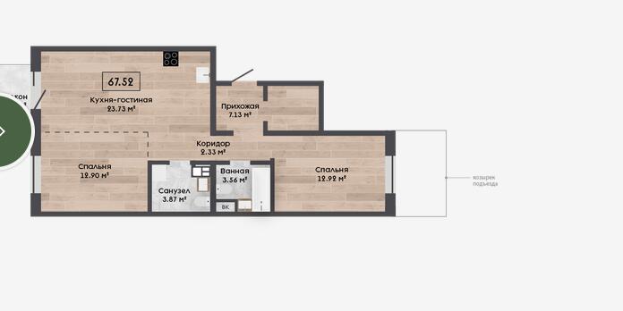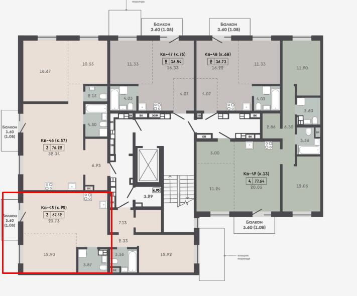 Квартира с кладовой 3.29 м2.