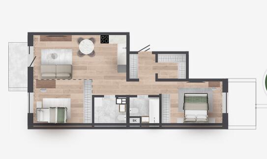 Продуманные планировки: Уникальные квартиры с личными террасами и участками на первом этаже, а также квартиры с мастер-спальнями, гардеробными и кабинетом. Кроме того, для каждой квартиры предусмотрена кладовая в техническом подполье, а для некоторых — кладовые на этажах.