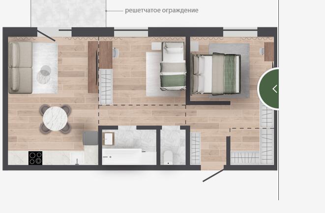 Продуманные планировки: Уникальные квартиры с личными террасами и участками на первом этаже, а также квартиры с мастер-спальнями, гардеробными и кабинетом. Кроме того, для каждой квартиры предусмотрена кладовая в техническом подполье, а для некоторых — кладовые на этажах.